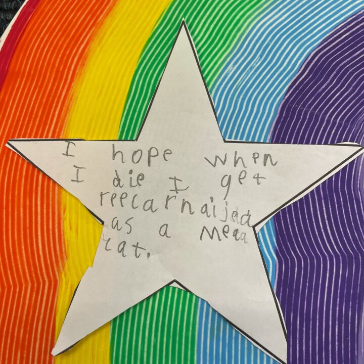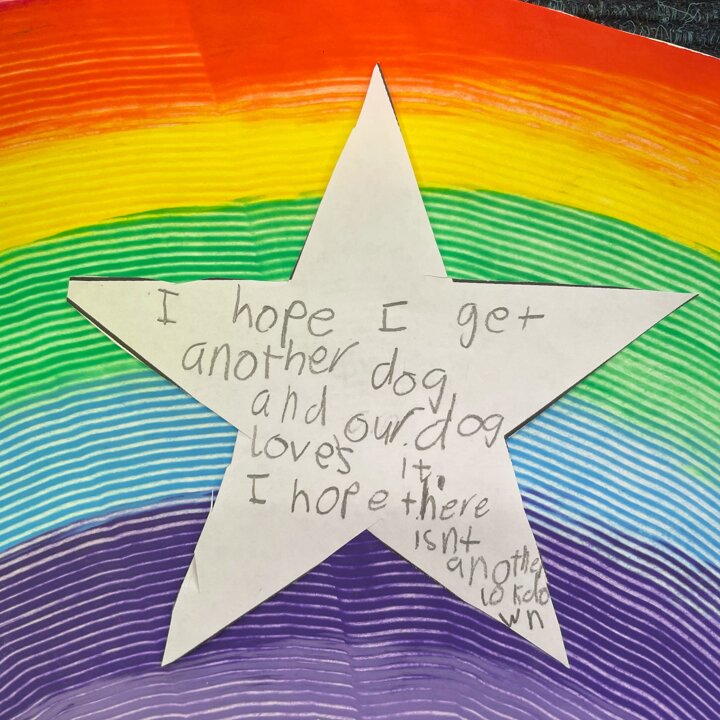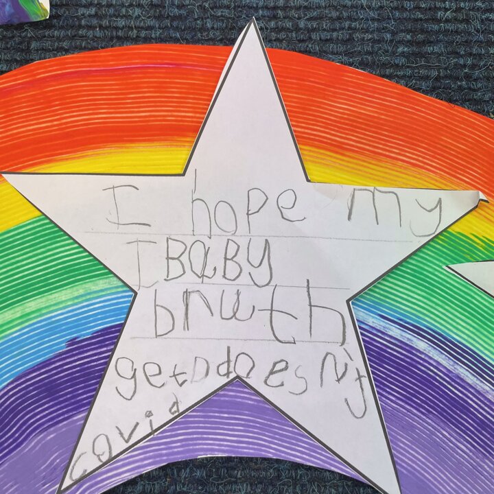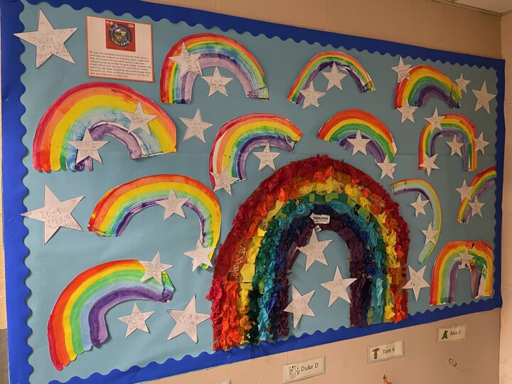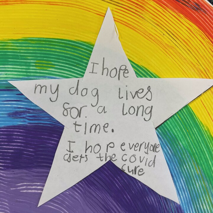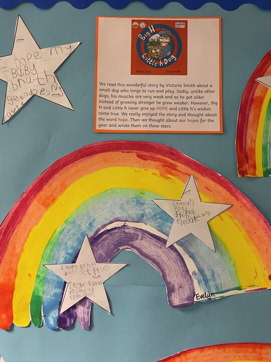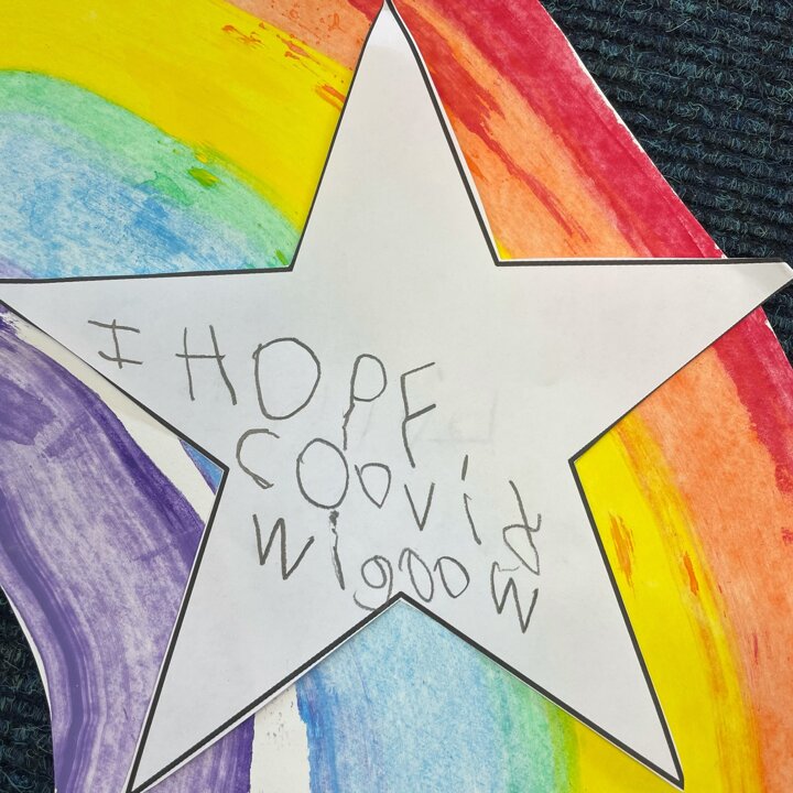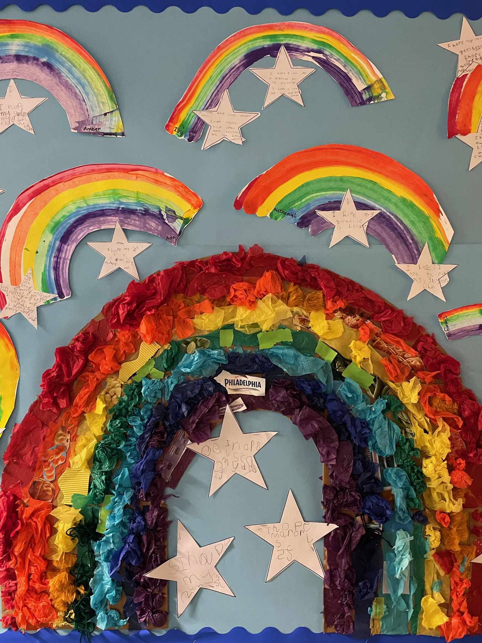 The children wrote their hopes on stars and we all worked together to create a beautiful big collage rainbow.