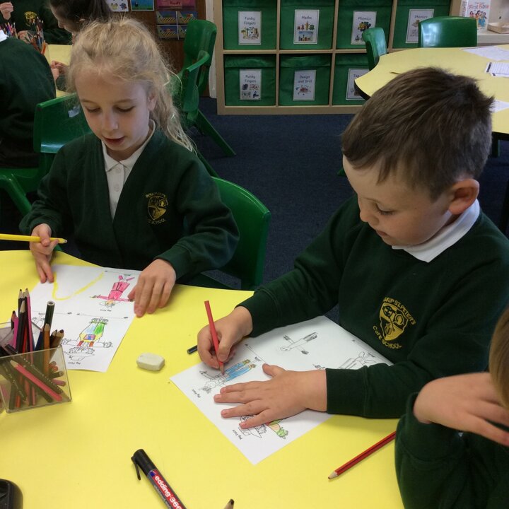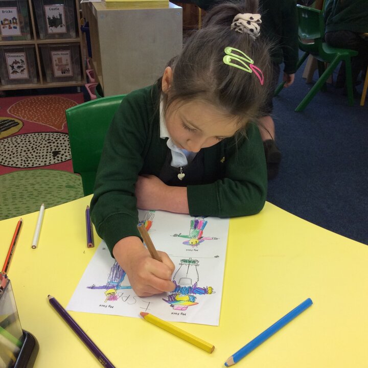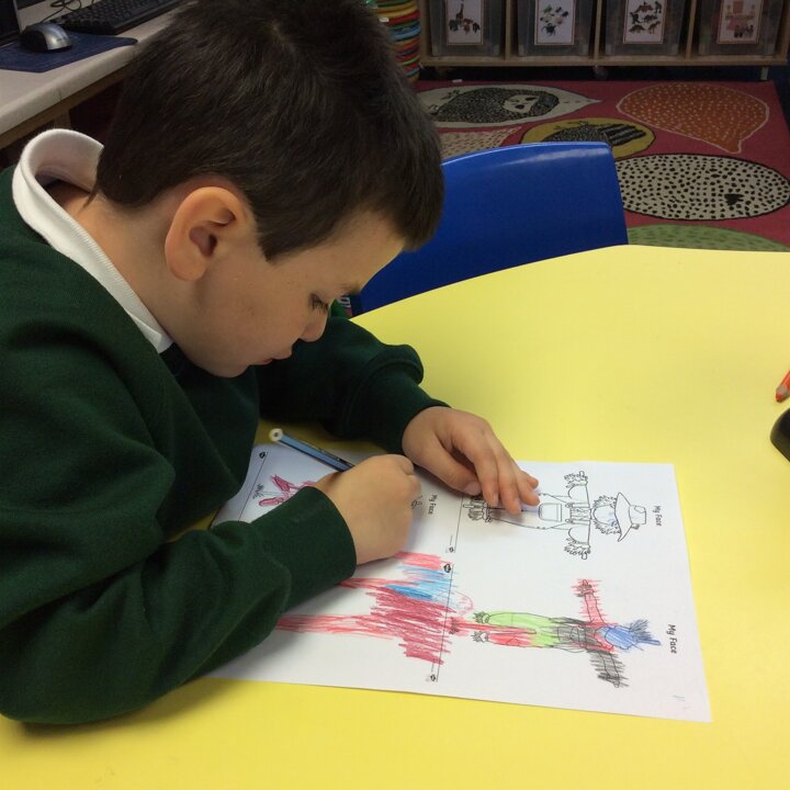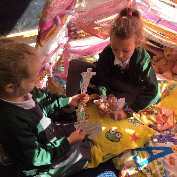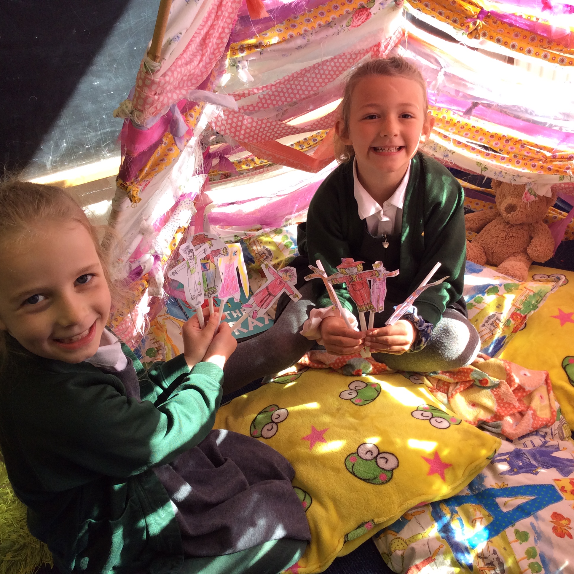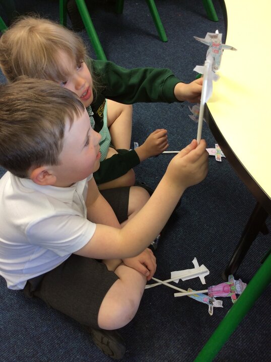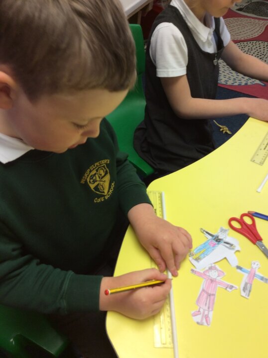 The Reception and Year 1 children have made puppets and played with them, really impressing me with their retelling of The Scarecrow’s Wedding and their own stories they have been making up. I was also really impressed with their growing independence as they measured to work out where the halfway point of their straws were. Lots of maths talk and thinking as they knew the two parts had to be equal length to make a half. All the children cut the straws and attached their puppets to them with sellotape, judging sizes and making decisions as to where to cut the sellotape for it to be the right size.