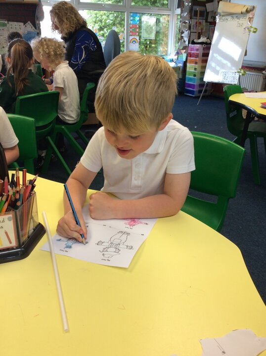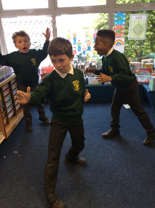 The Year 1 & 2 children did a drama activity acting out a scene from the story and then holding a freeze frame of the action. They have been using photos I took of their freeze frames to write sentences describing the action and use expanded noun phrases to make their sentences really interesting!
