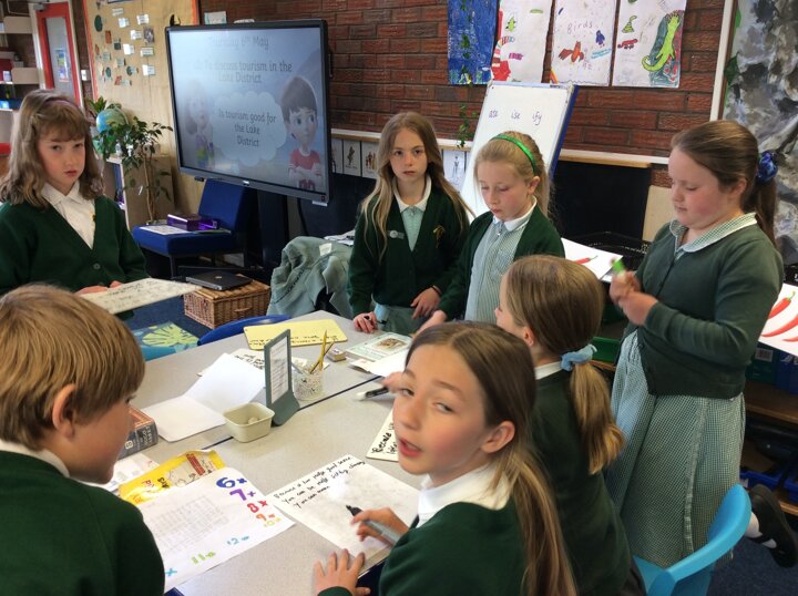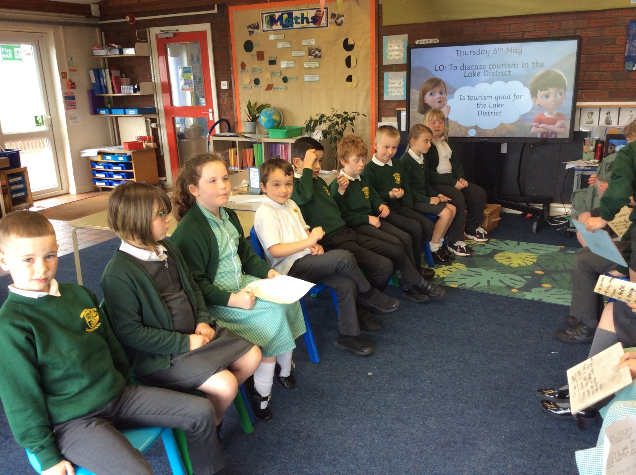 The children split themselves based on opinion into two sides - for tourism and against tourism. Each group worked together to come up with interesting points to back up their opinions.