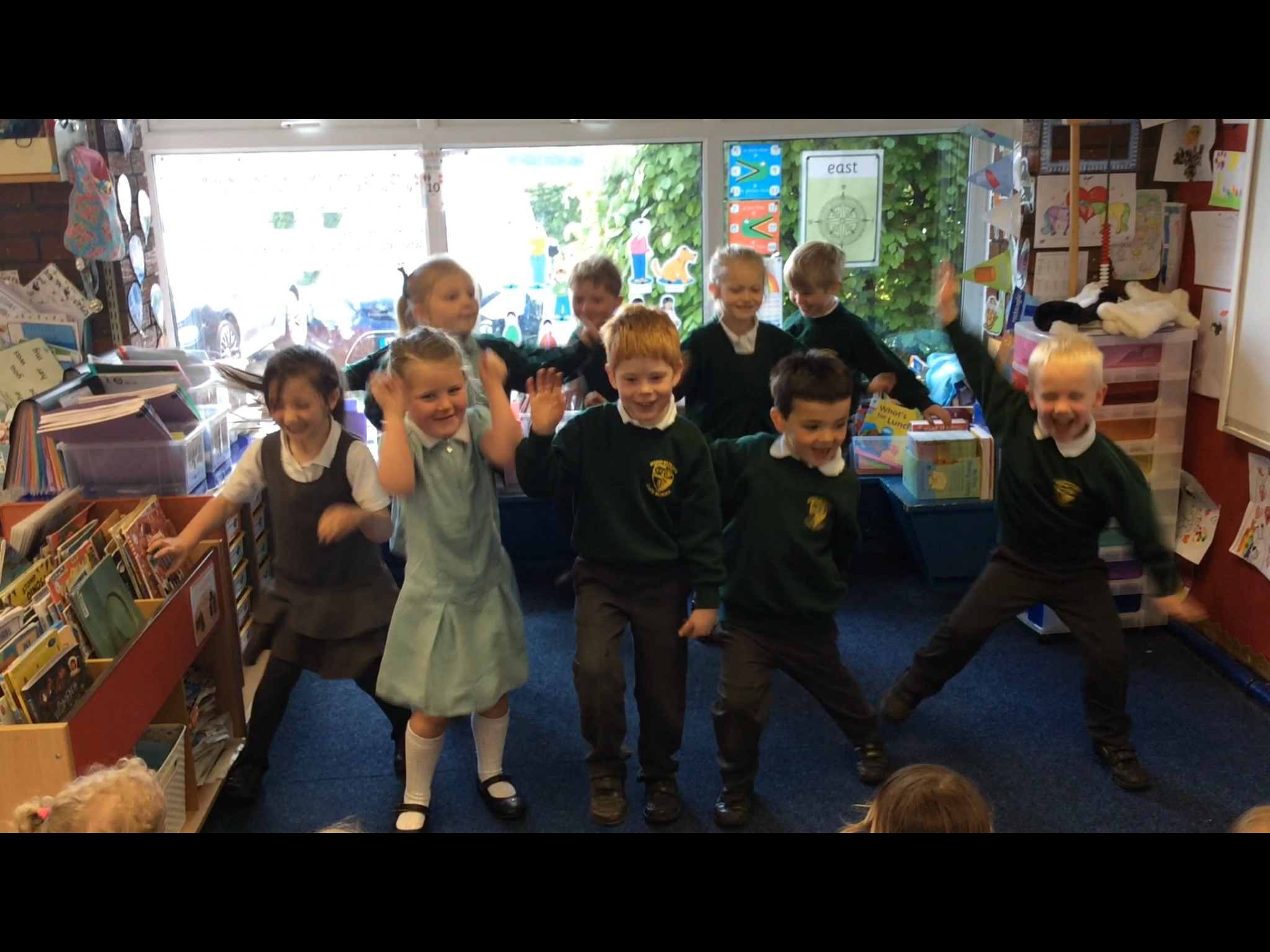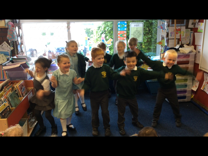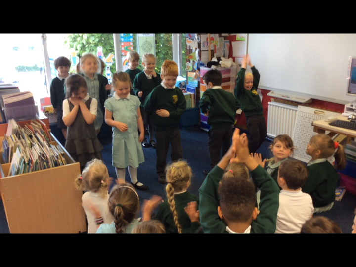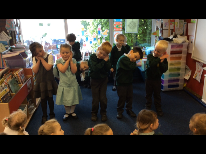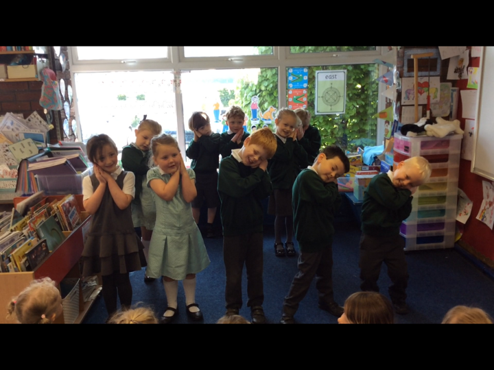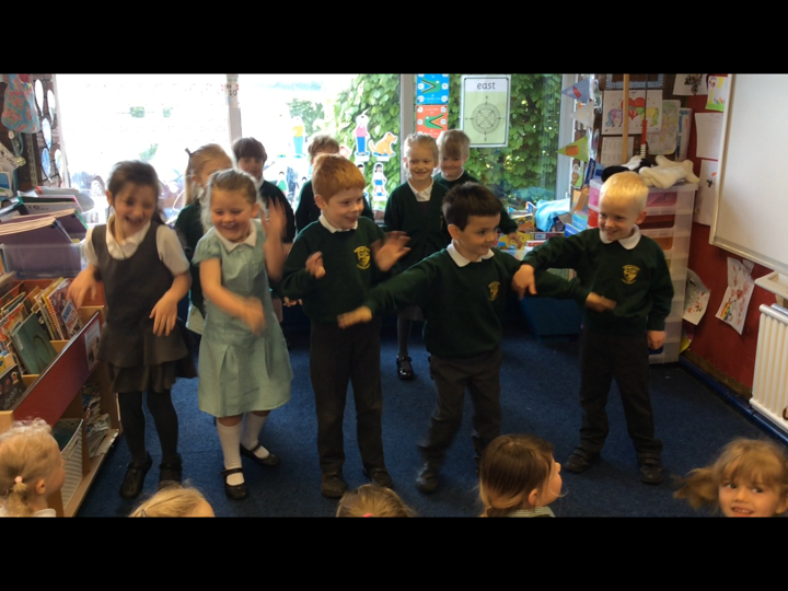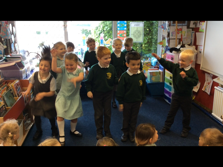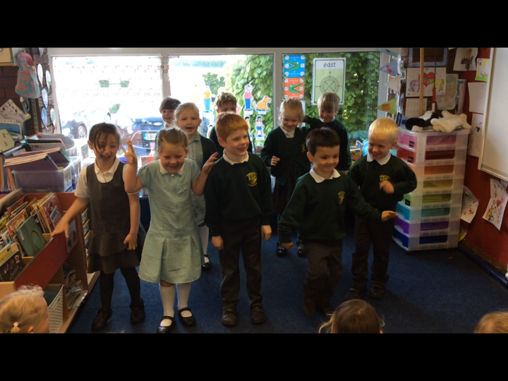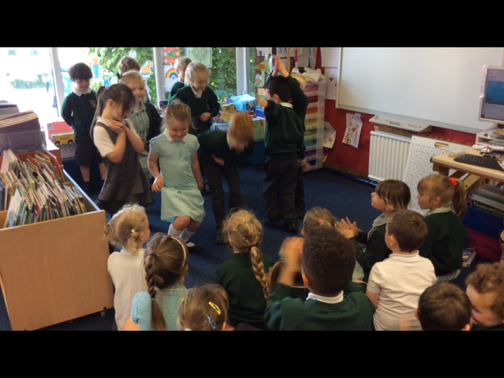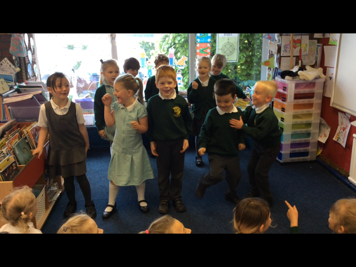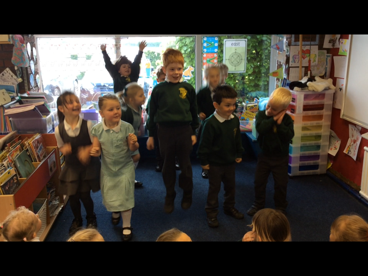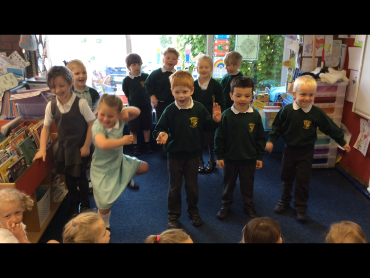 This morning the Reception children performed 'Dingle Dangle Scarecrow With A Flippy Floppy Hat' to us. They were wonderful and brilliant because they enjoyed it. they did the actions perfectly, they danced, they joined in with the music and they actually sang.