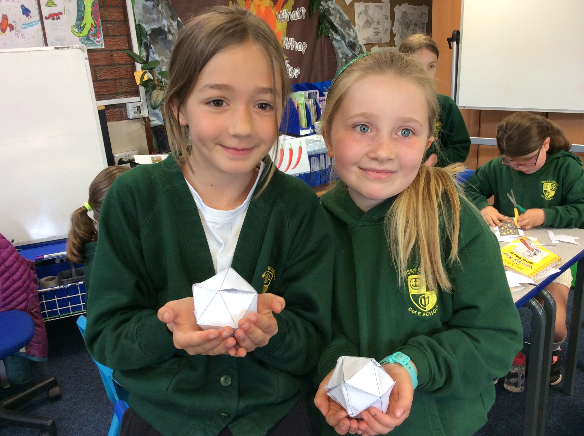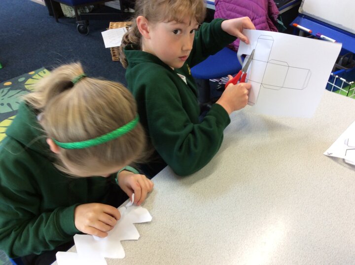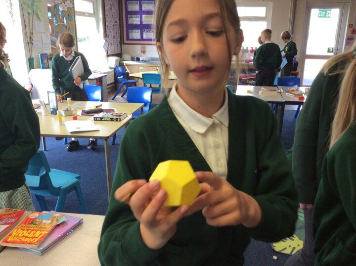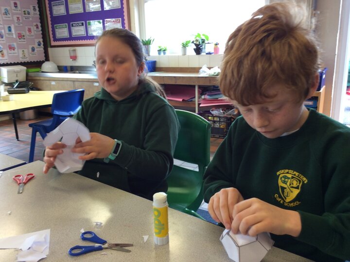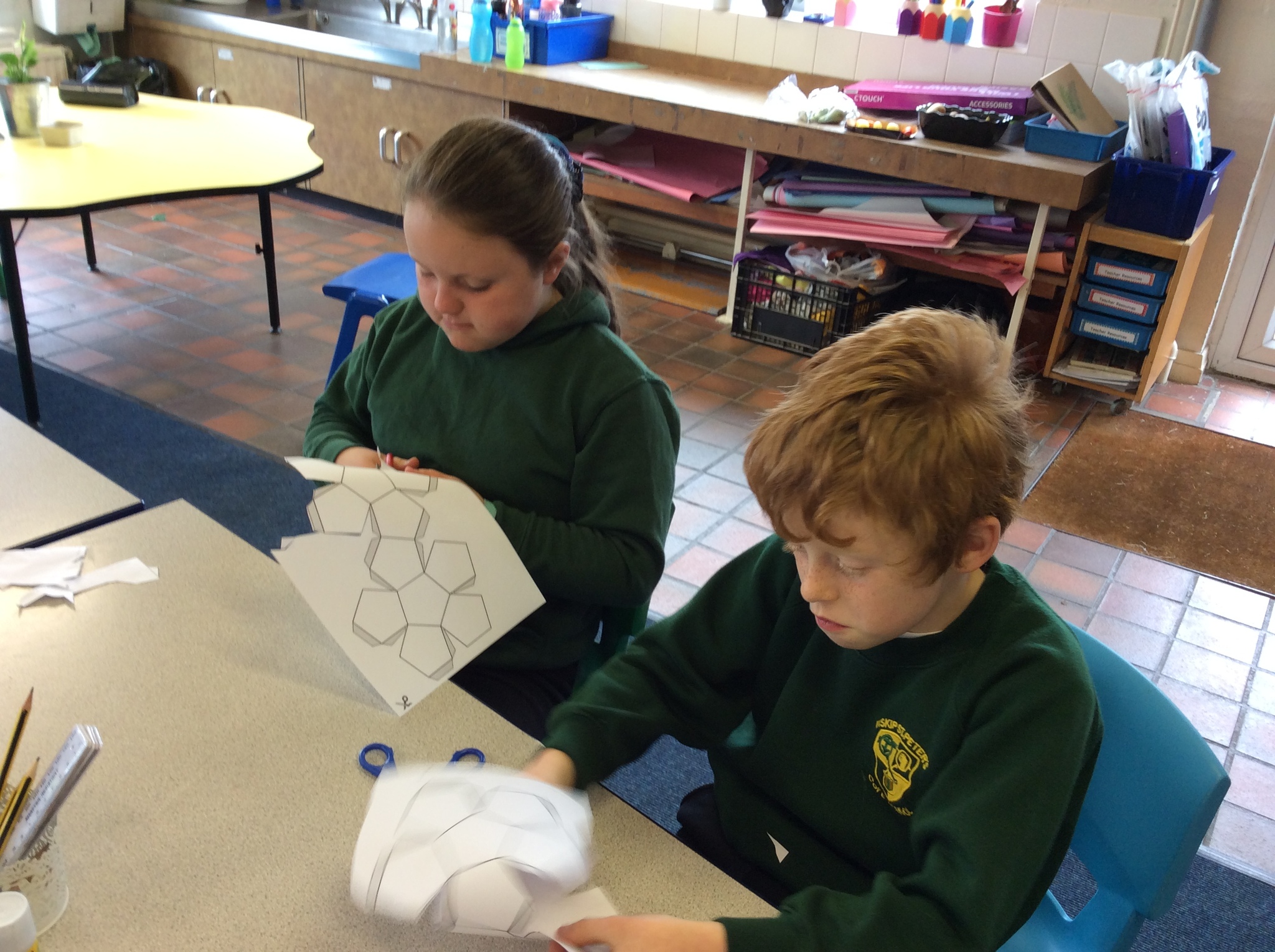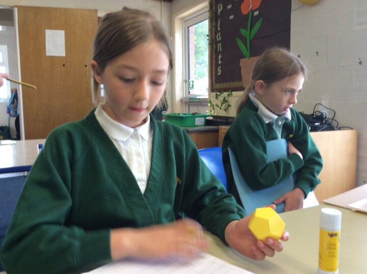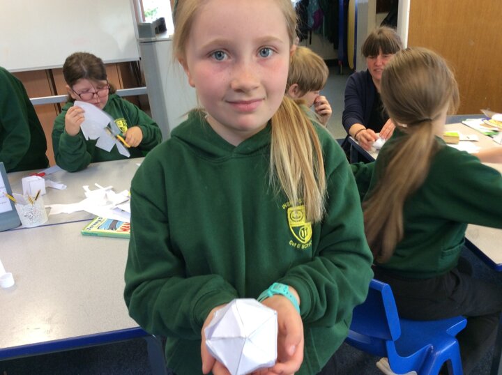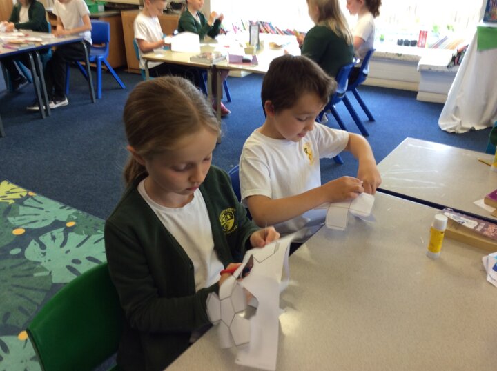 The children enjoyed cutting out the shapes and creating 3D shapes from them. Some children even took on the challenge of an icosahedron- a twenty sided shape!