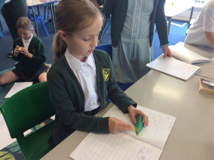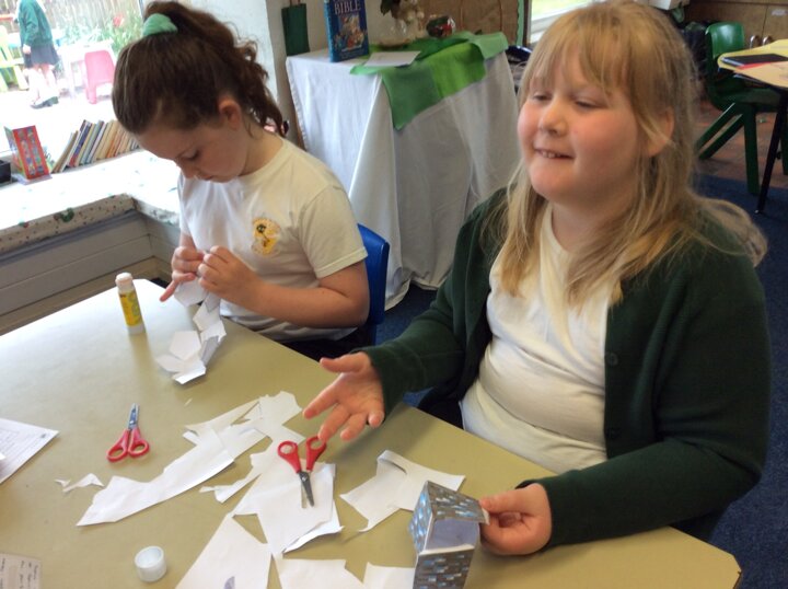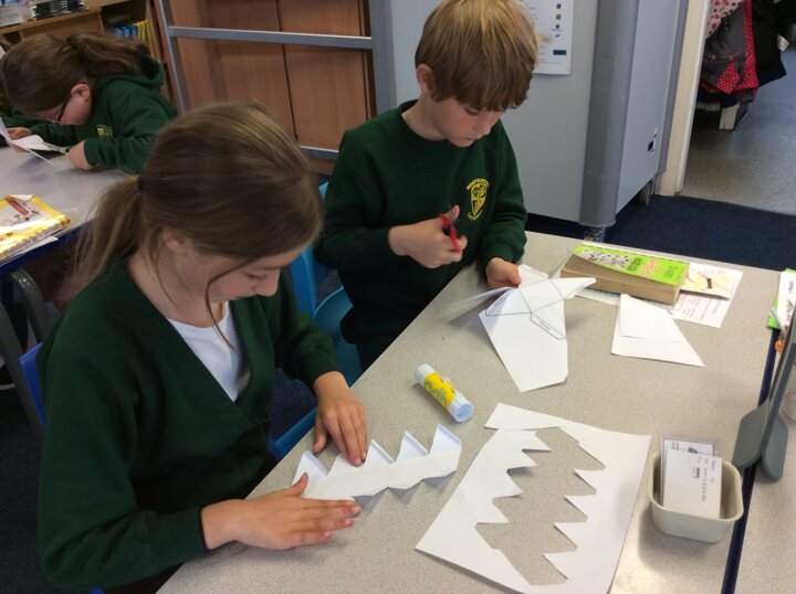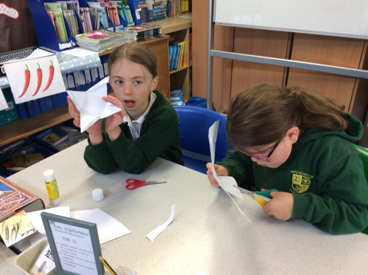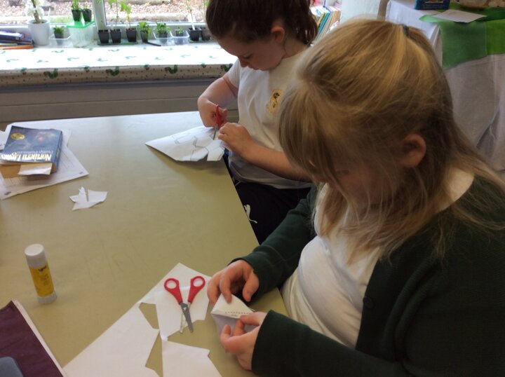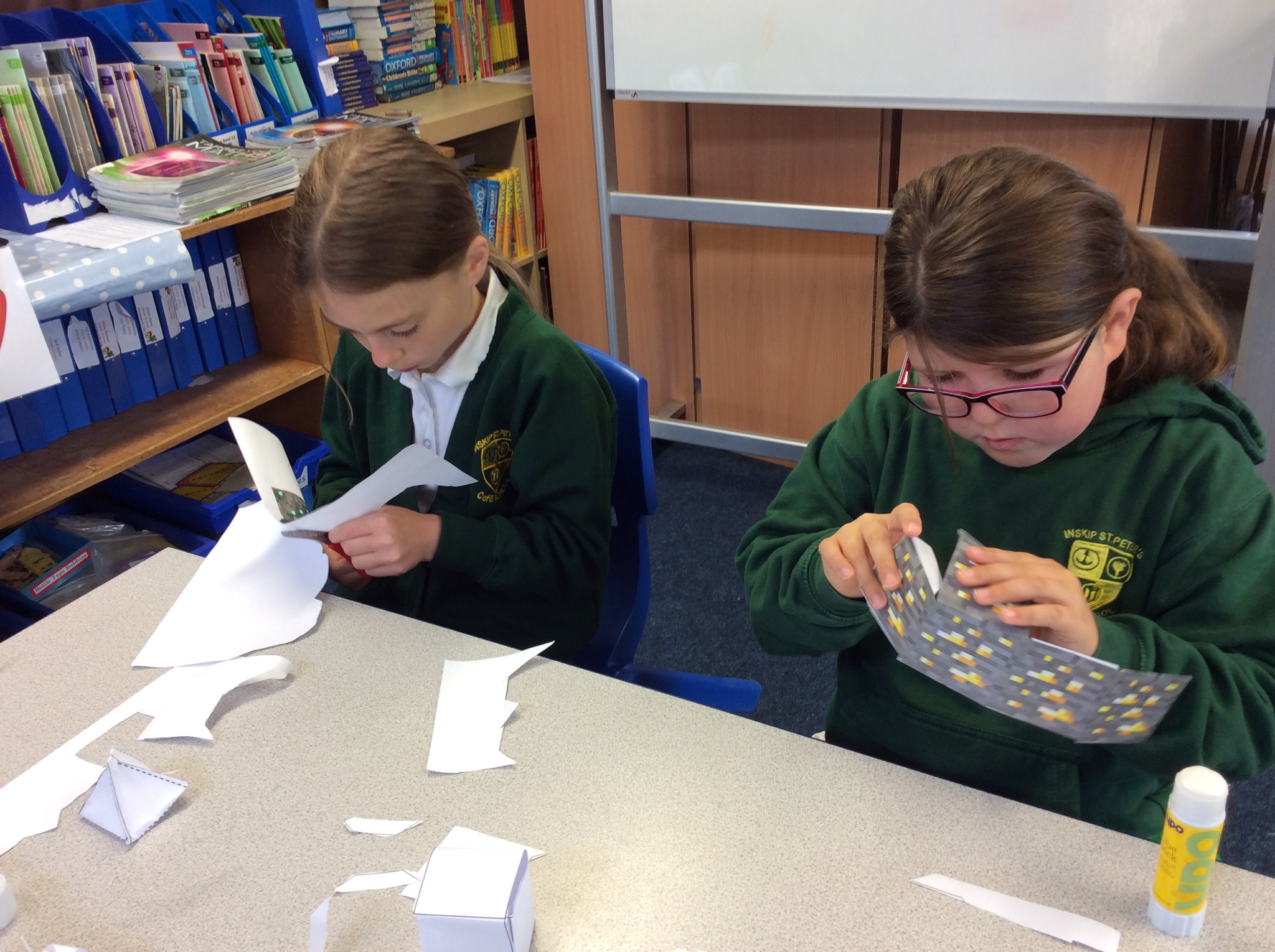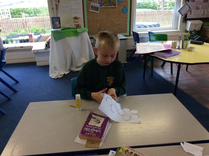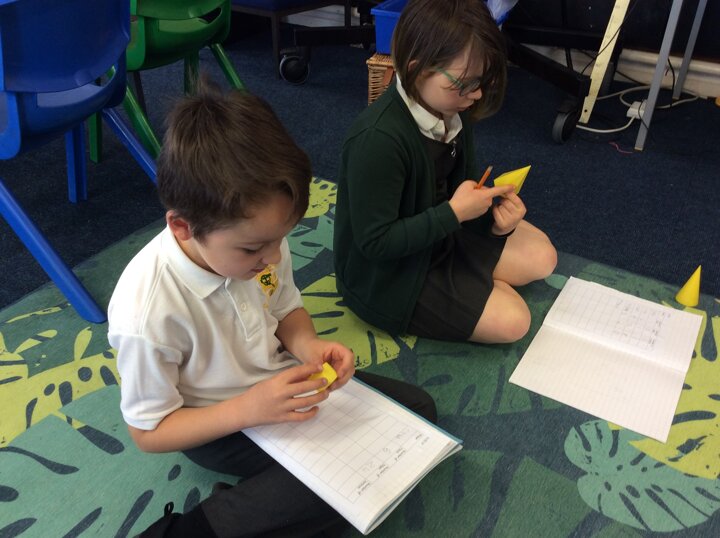 The children enjoyed cutting out the shapes and creating 3D shapes from them. Some children even took on the challenge of an icosahedron- a twenty sided shape!