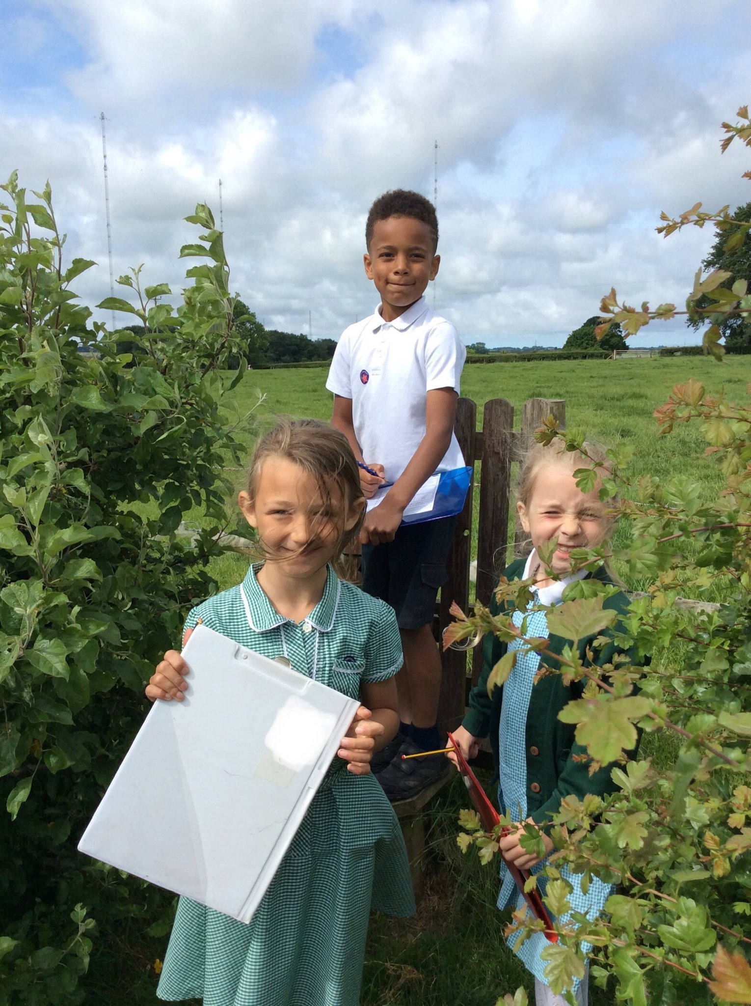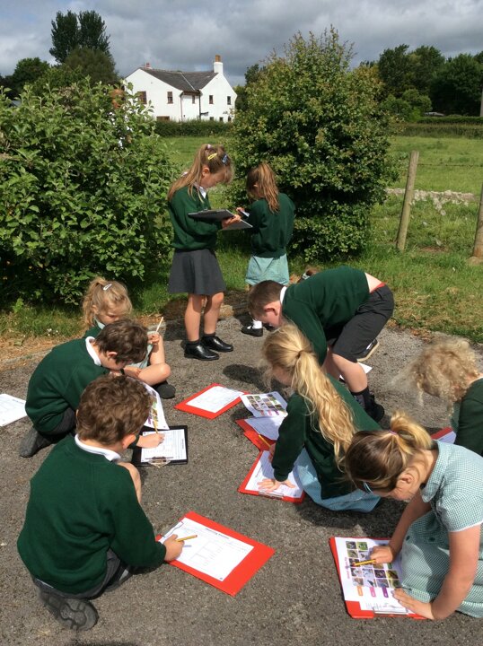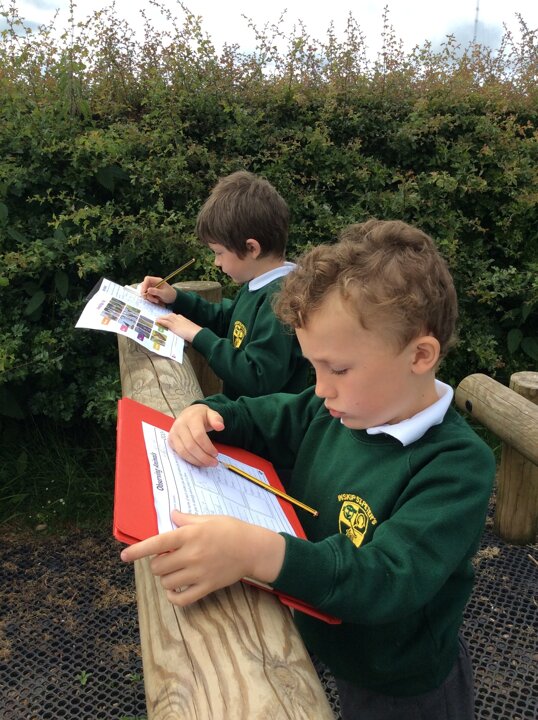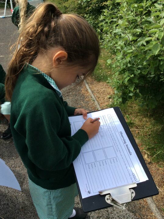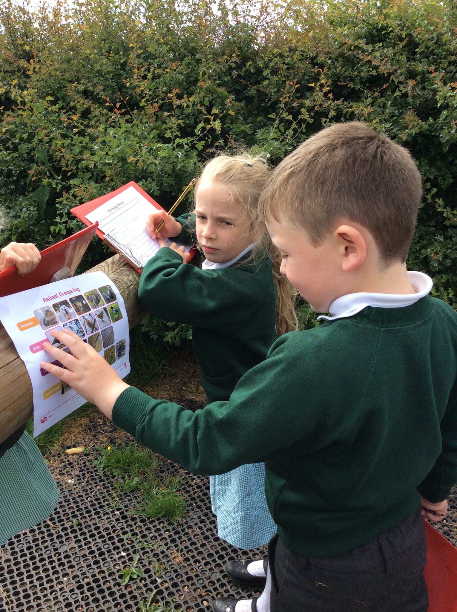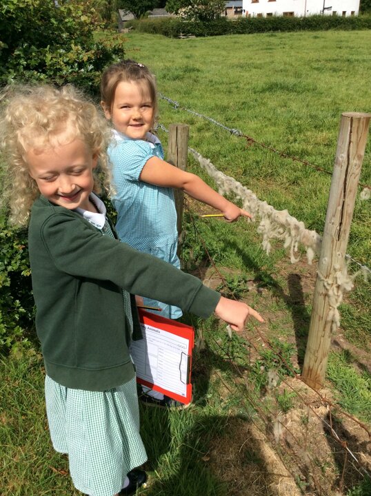 We saw lots of mammals and birds but no animals from the other groups. We discussed why this might be and the children came up with accurate ideas as to why not. For example they suggested that as we had no pond or lake in or next to our school field we wouldn't see any fish. We also discussed what animals might be living in the hedges that would be hiding from us or might have been moved to a different field. We are used to seeing sheep and cows in the field next to the playground, even though the sheep were not in the field today we saw evidence that they had been there as there was fleece from the sheep caught on the barbed wire fence.