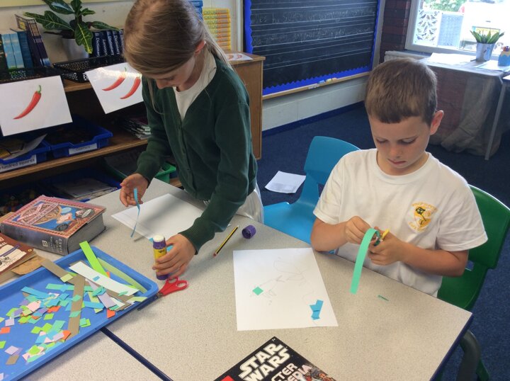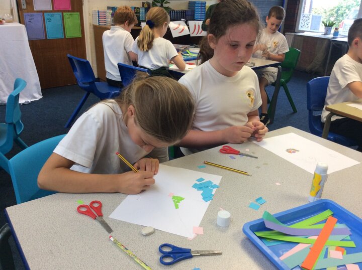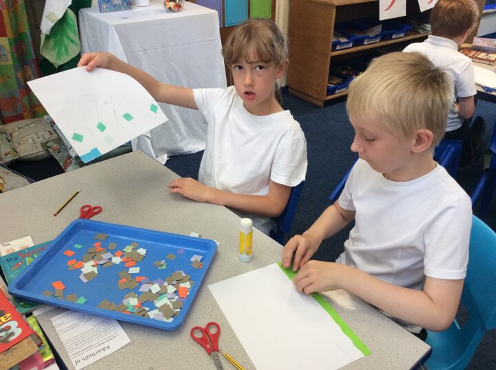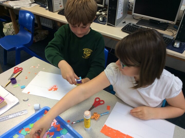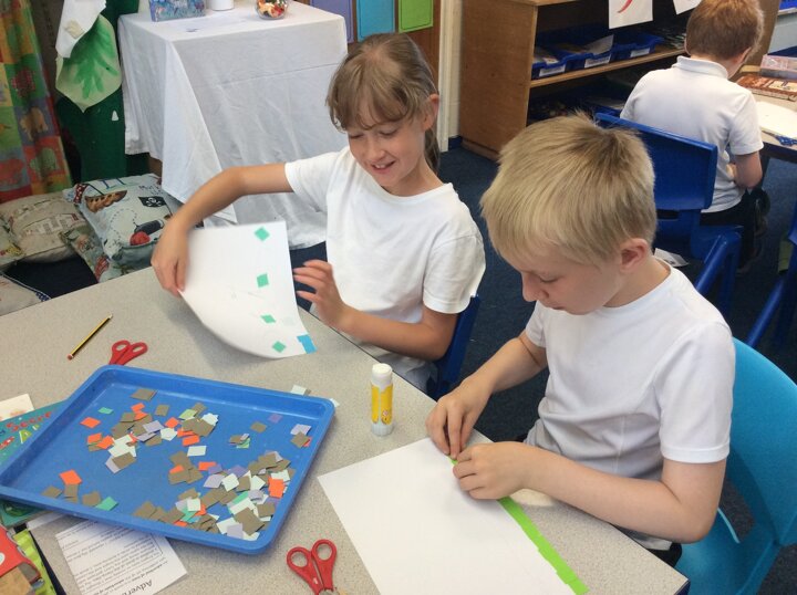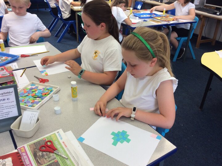 Continuing on with our Roman topic, this week the children explored mosaics in their art. Using small colourful pieces of paper, children stuck them down to create an image.