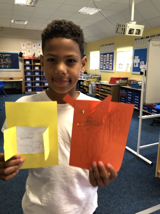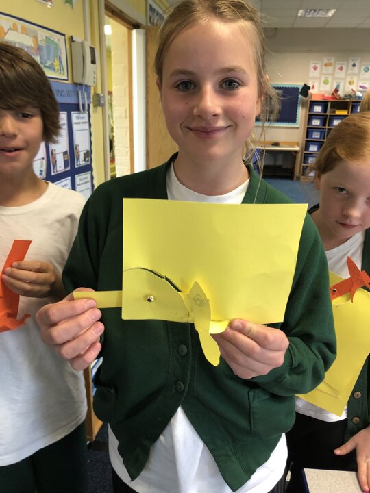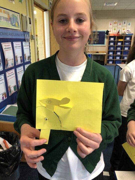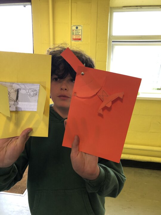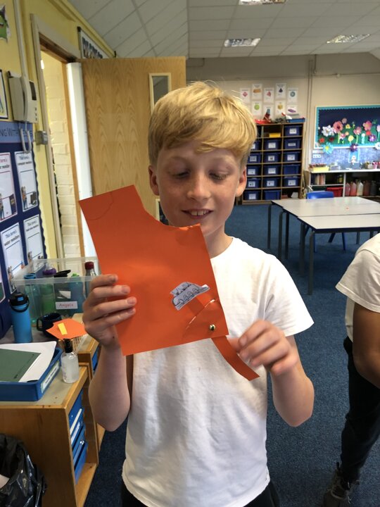 In DT today, we investigated some more pop up mechanisms to help us with our own pop up book designs. The first one we tried was a lift the flap mechanism and the second was a rotator mechanism. The children got to try out using a pair of compasses to make the rotator flap which was really tricky but rewarding when they completed their prototype.
