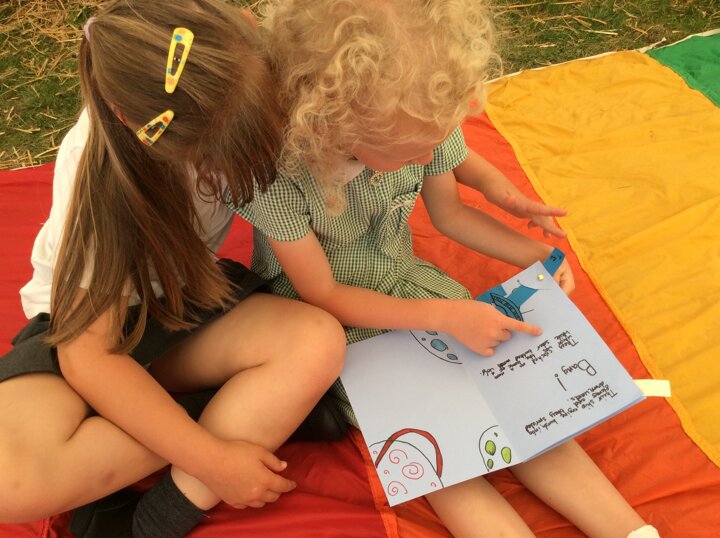 Here are the final creations by Upper school and the Lower School children then thoroughly enjoying reading and sharing them.