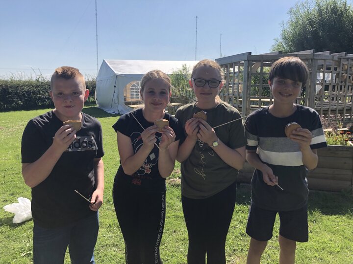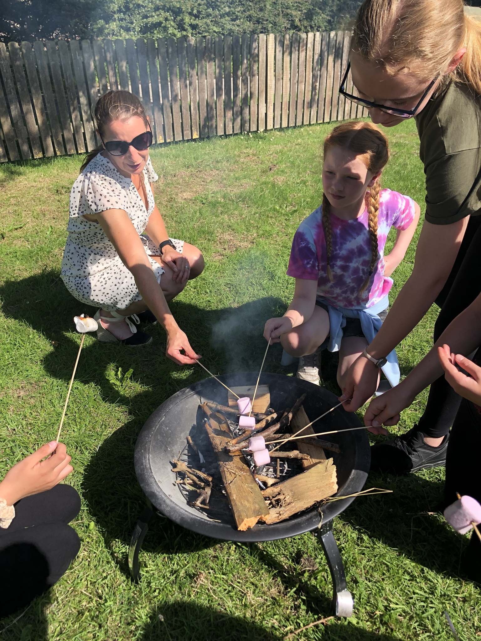 As a continuation of the Year 6 Leavers’ Activities Week, the children were shown how to use flint and steel to light fires and then how to make a proper campfire. They then had fun roasting marshmallows and making S’Mores. There was even some campfire singing too!
