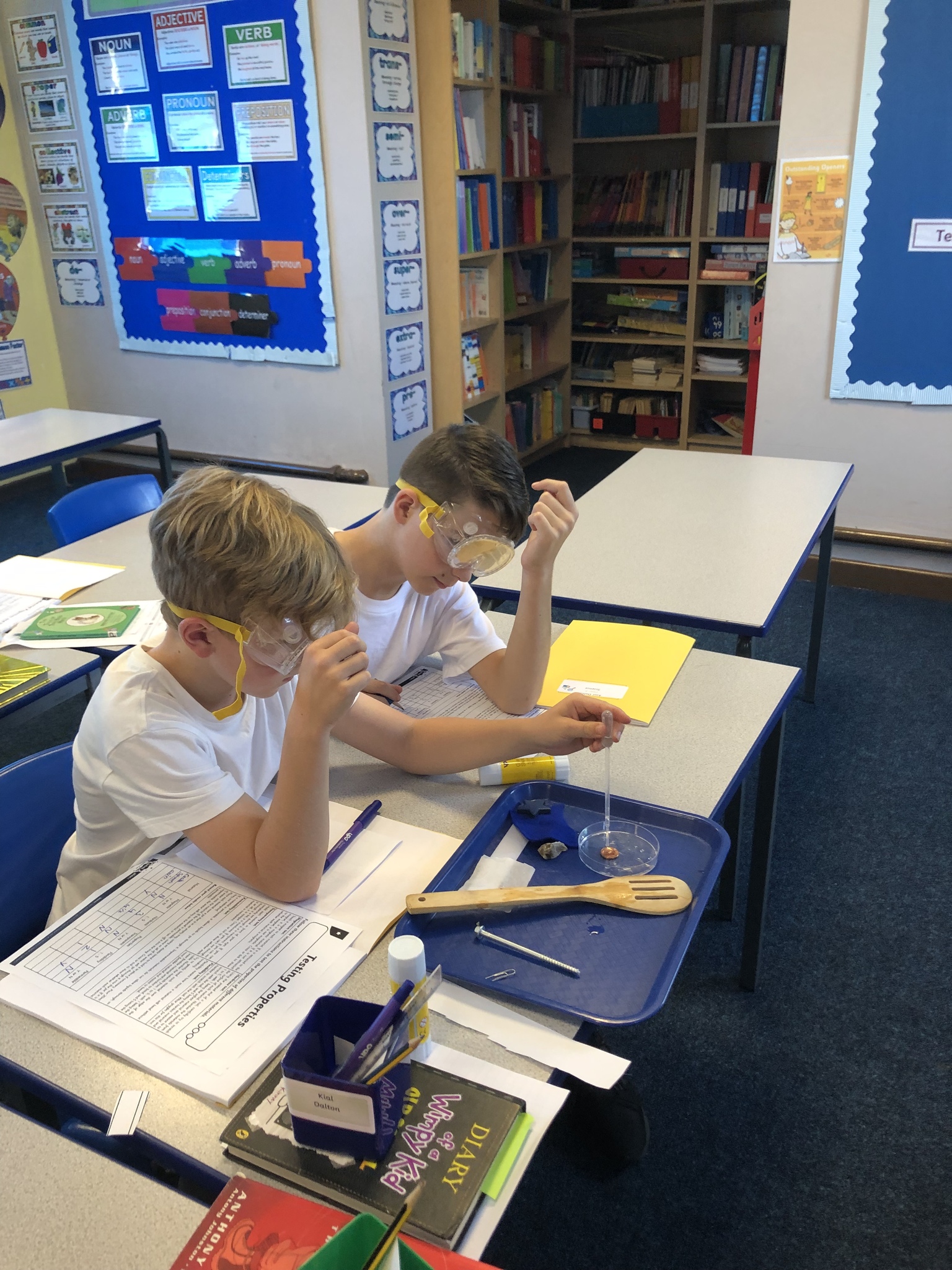 Year 5/6 had their first Science lesson of the term this afternoon and we got straight into some practical investigating. This term’s topic is Properties and Changes of Materials so we started off by explaining what it means by ‘properties’ and identifying which materials had particular properties.