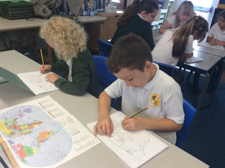 Middle school's geography this week began with revising our geographical knowledge. Children have used an atlas to locate different countries, continents, oceans, mountain ranges and cities. They have had to get used to using the atlas and finding the correct map for the correct information.