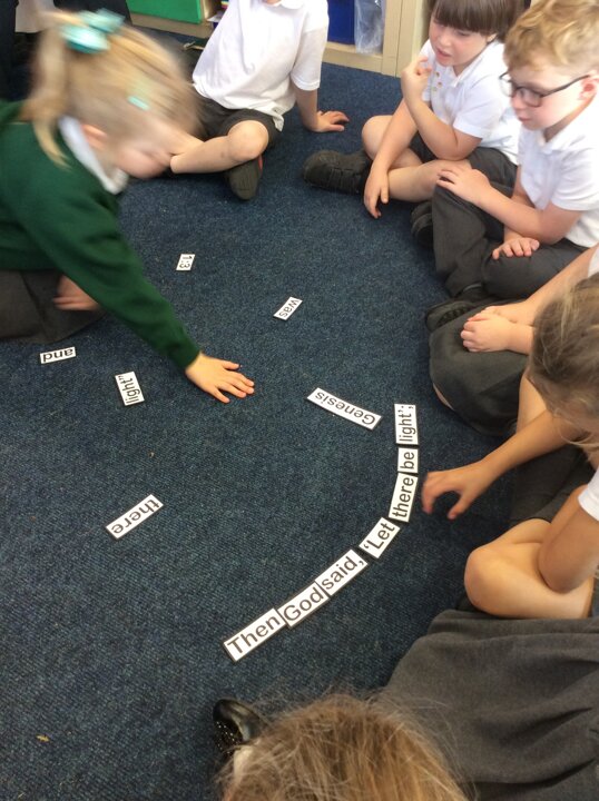 The children had lots of ideas and tried saying the words in the voice they though God would use . They used powerful commanding voices, happy, kind and confident voices.