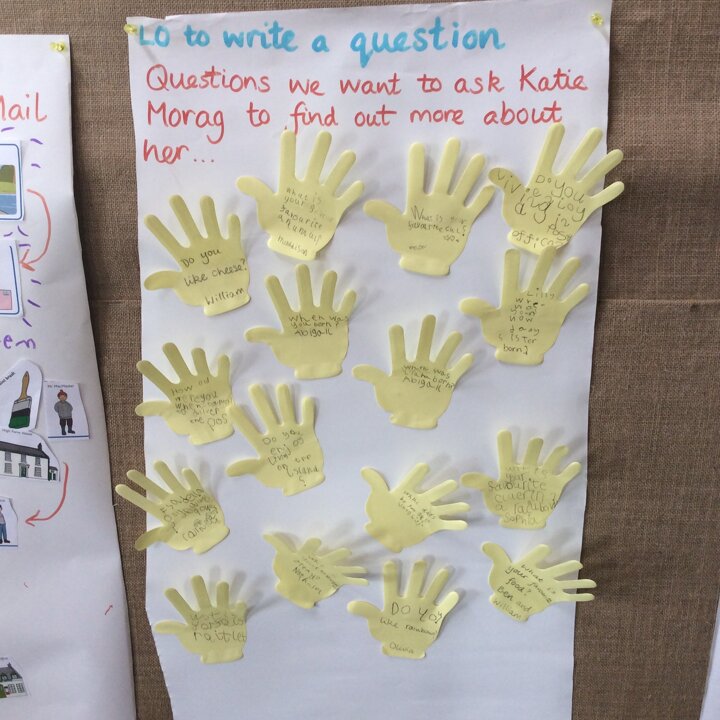 The children wrote questions they wanted to ask Katie and then we put Katie (me) in the Hot Seat and asked her the questions!