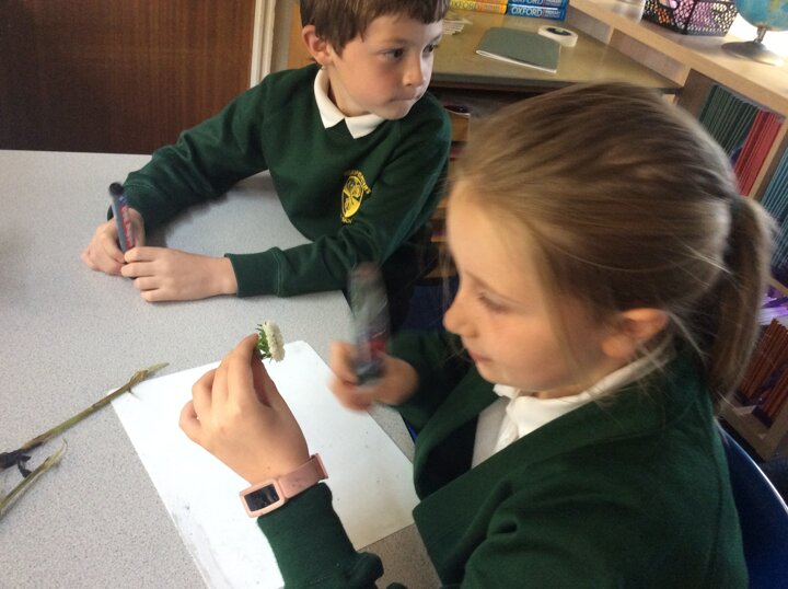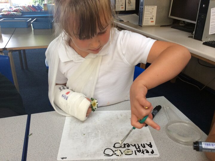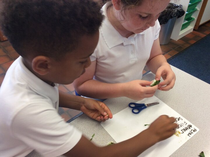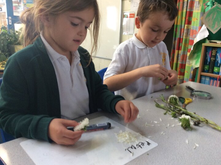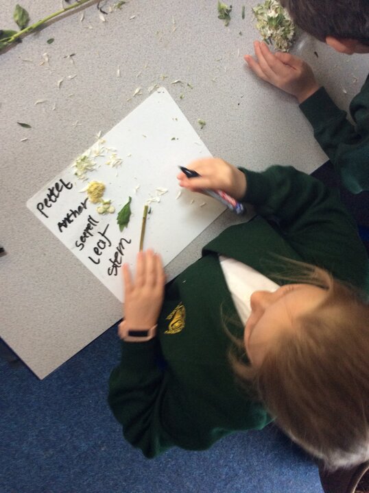 Children have continued their investigation into plants this week by dissecting a flowers and separating the parts inside that we found. Children built on their previous knowledge from last week of plant parts used in pollination and plant reproduction.