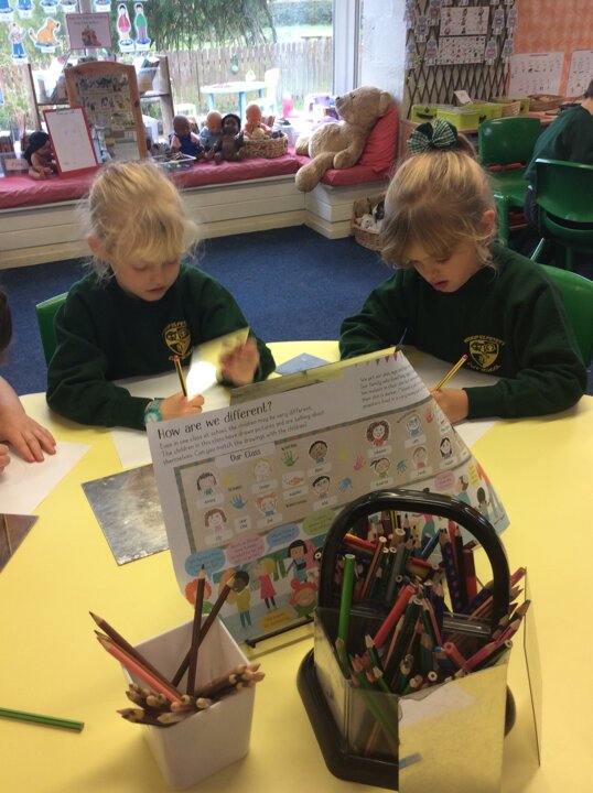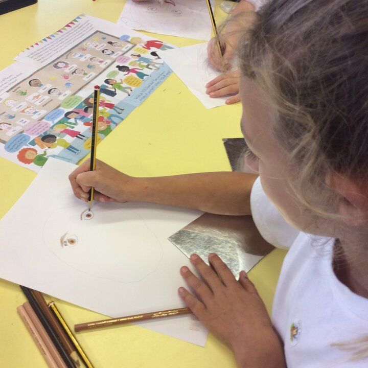 Following our PSHE learning looking at diversity the children spent some time looking closely at their faces in mirrors and noticing what made them unique. Then they drew a self portrait.