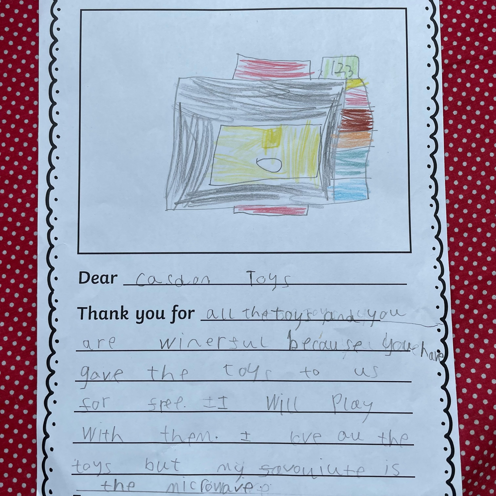 The children have written thank you letters to Casdon and are really enjoying playing with them, already they have encouraged lots of discussion and new role play situations.