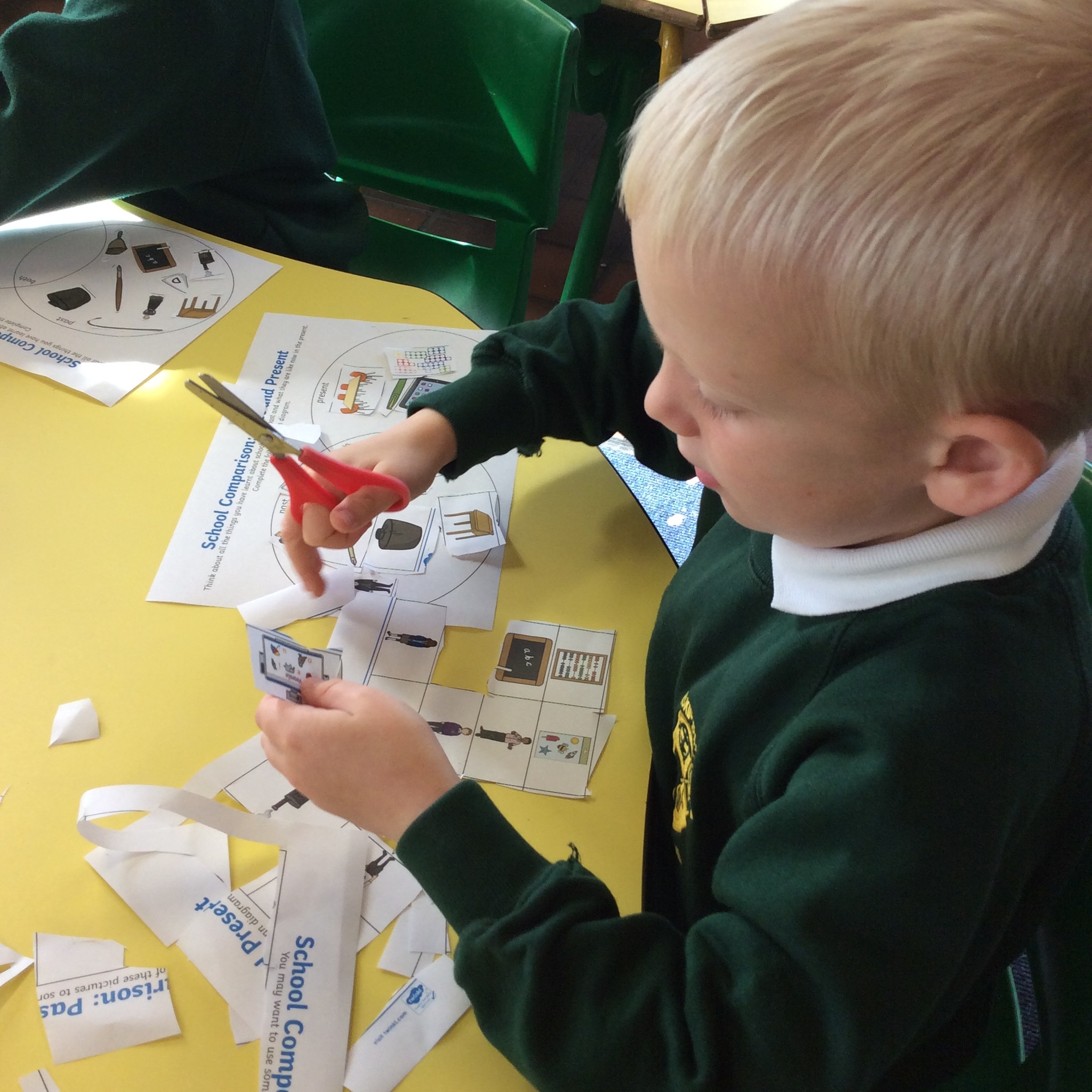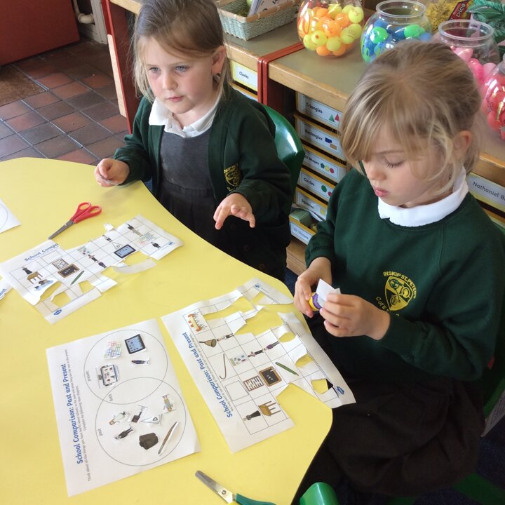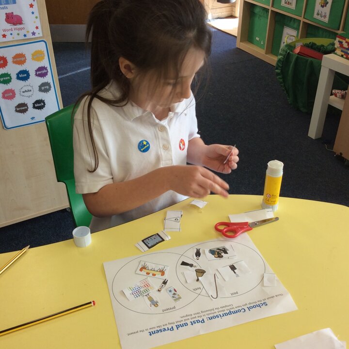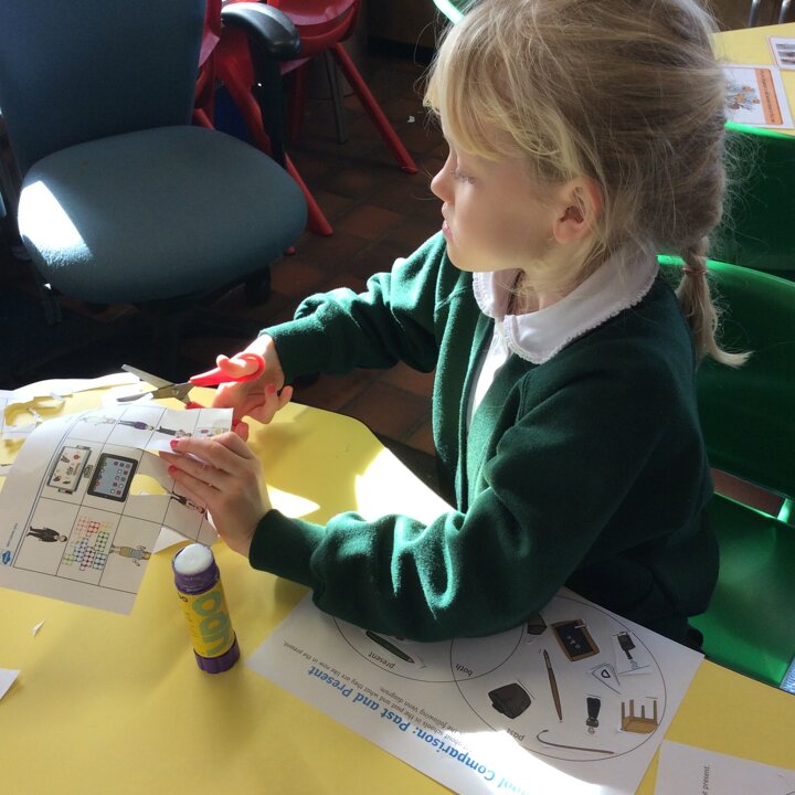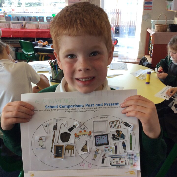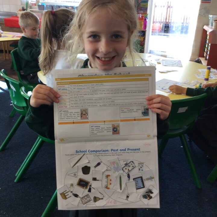 We talked lots about the similarities and differences in the classroom and how children learnt in school in Victorian times. We read our knowledge organisers and then did an activity sorting pictures of items from school in the past and now.