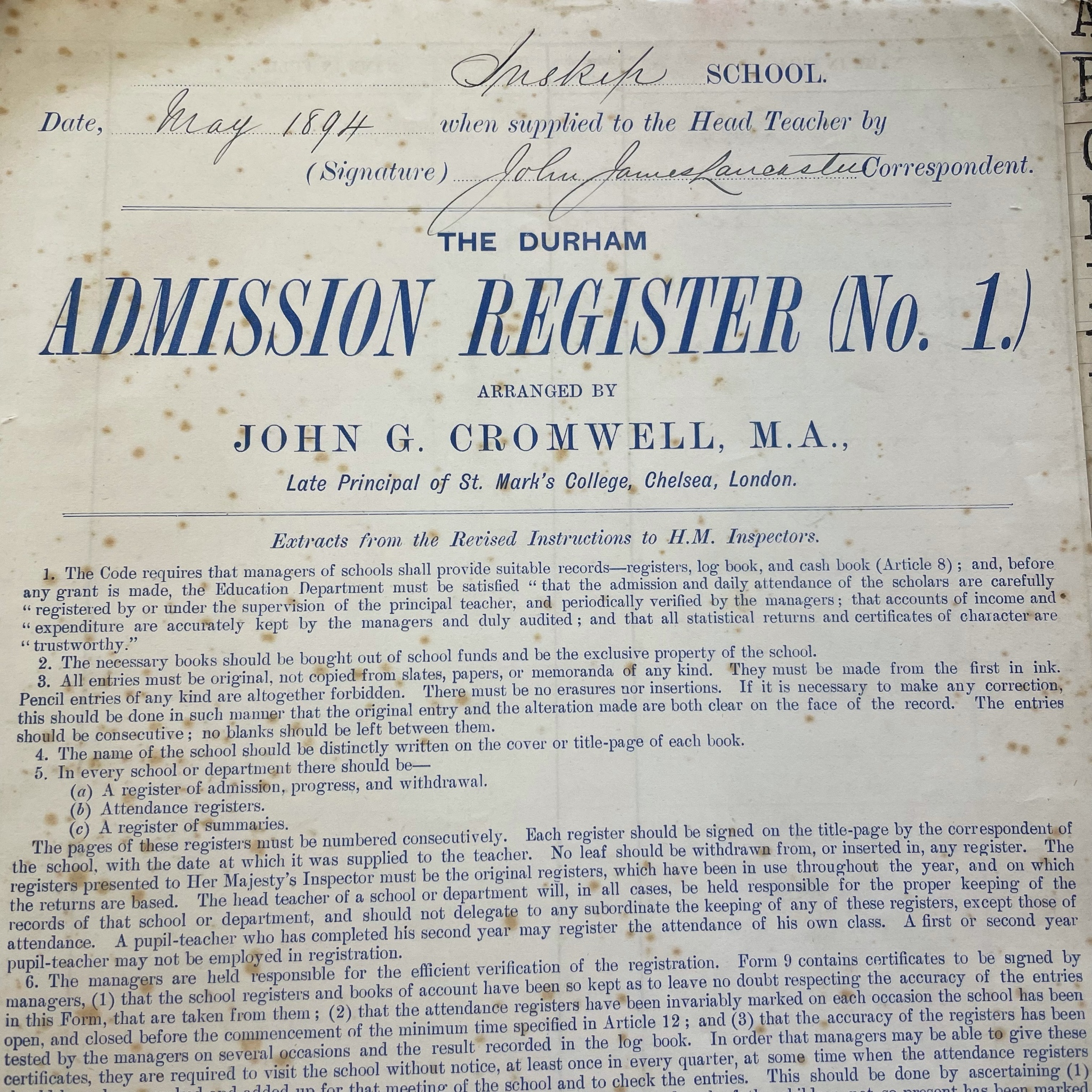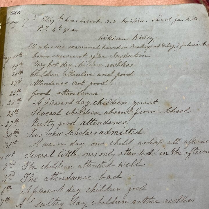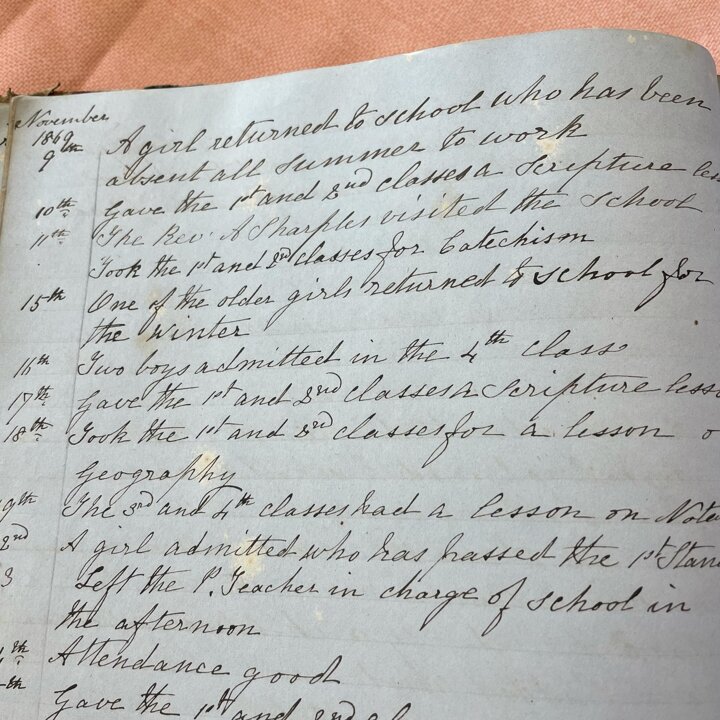 ’9th November 1869 A girl returned to school who has been absent for the summer to work’