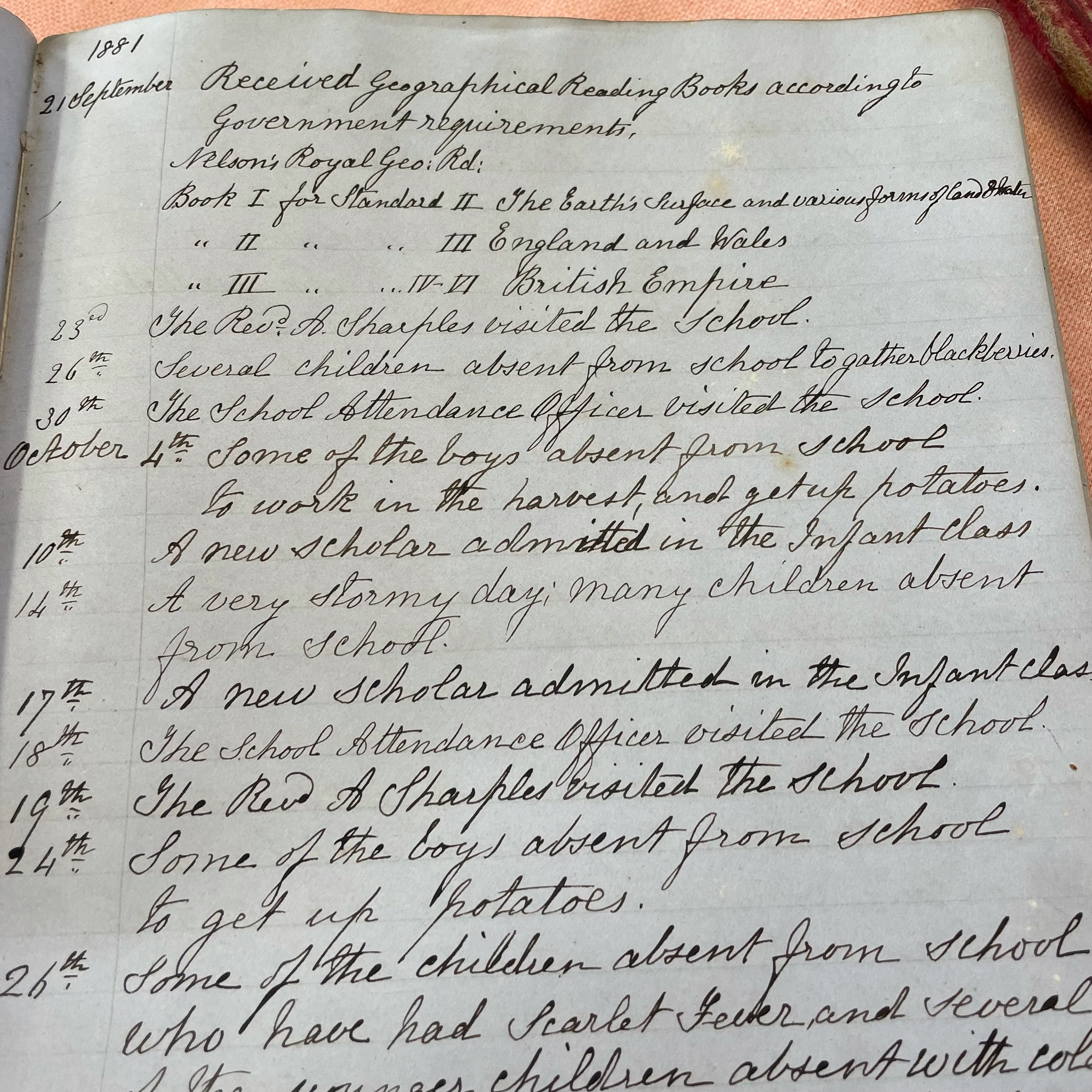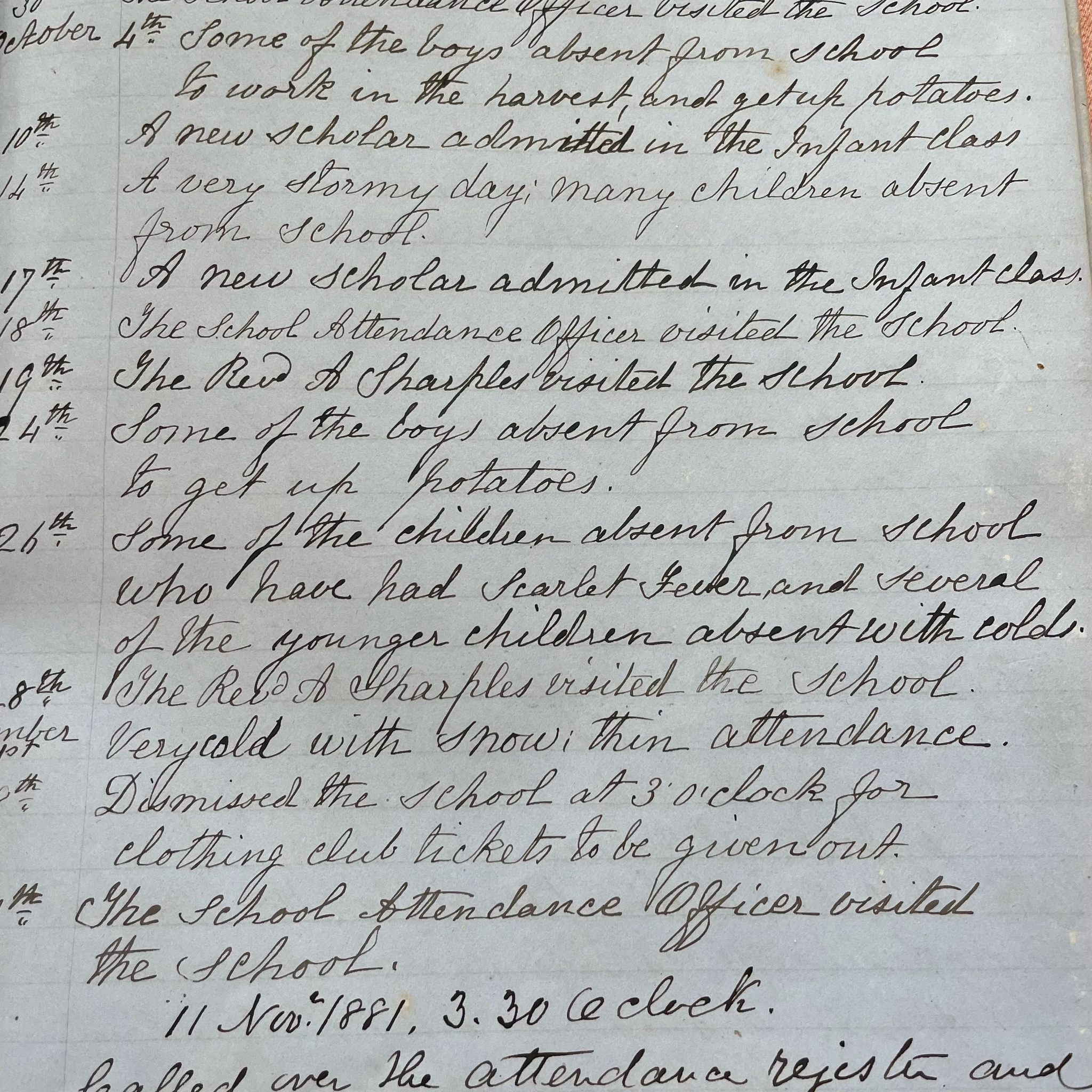 ’24th October 1881 Some of the boys absent from school to get up potatoes’