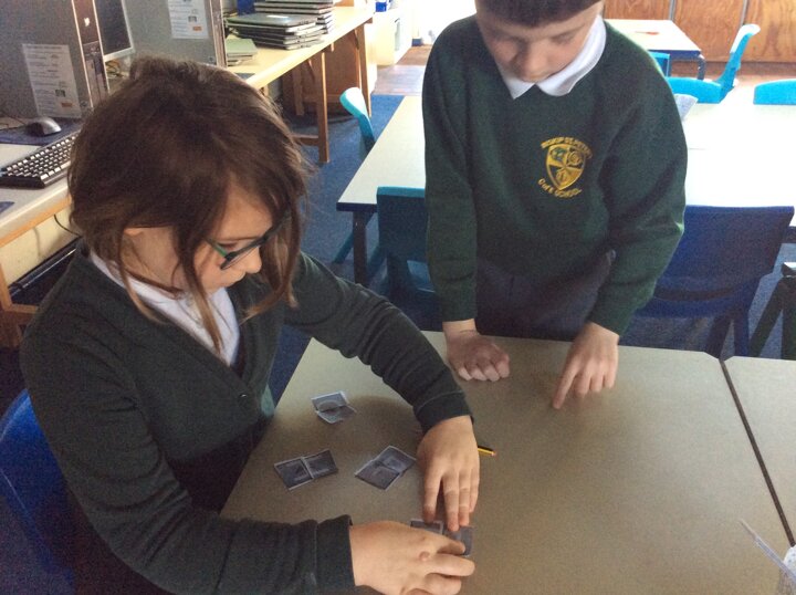In the afternoon, the children learned about the different periods of the mesozoic era: the triassic, jurassic and cretaceous. They learned about what the earth was like, what plants were around and what life roamed the earth. The children created their own postcards imagining they had gone back in time to one of these periods and they described what they saw.