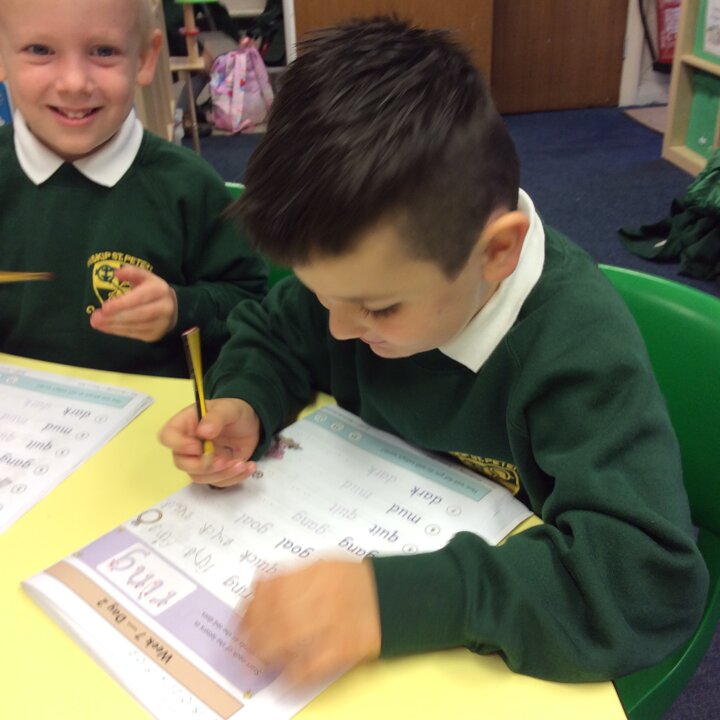 In Lower School we start every day with handwriting practise, the children are showing great progress particularly our Reception children.