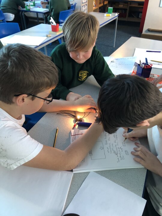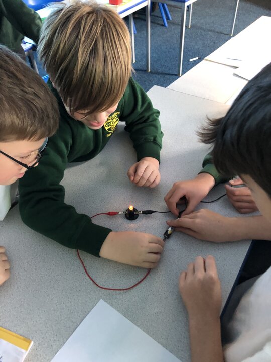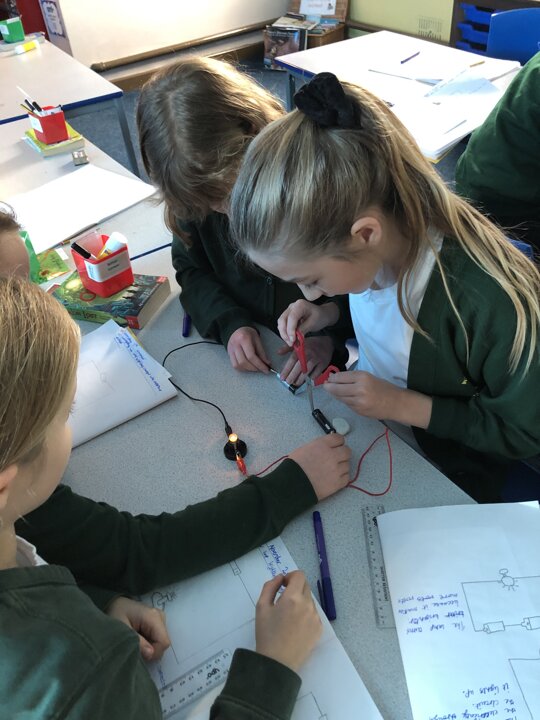 Today the children began a new topic in Science-Electricity. We had lots of discussion first about the uses of electricity and the dangers it poses. Next we investigated the vocabulary of voltage in circuits. The class explored what happens to a bulb in a circuit when more cells (batteries) are added. This was a good way to assess which children could remember how to make a simple circuit and also to see which children could put the batteries into the circuit correctly. They did really well and found out that although the bulb did get brighter as the cells were added, it could only take a certain amount of voltage (electrical push) before it got too bright and broke.