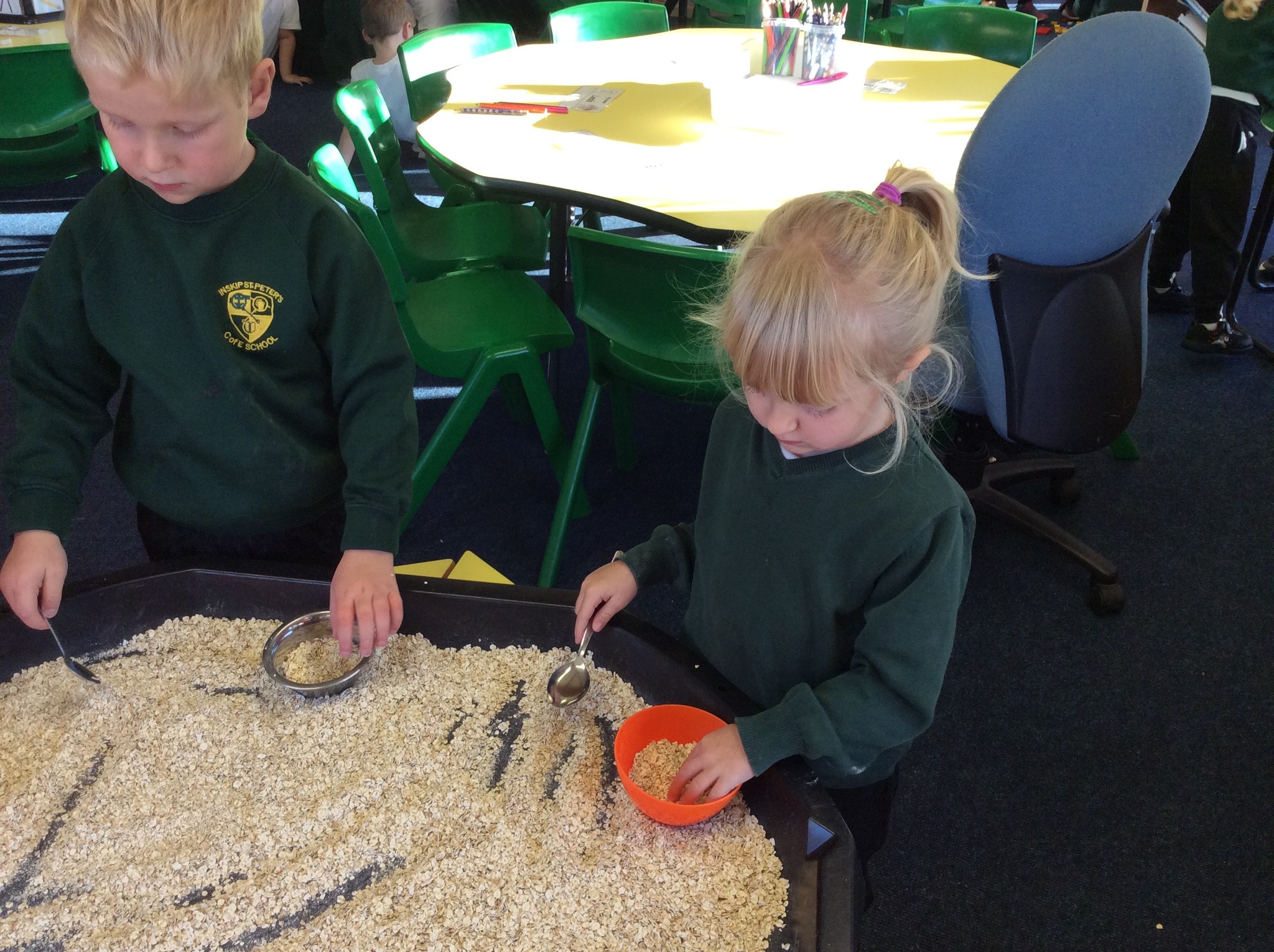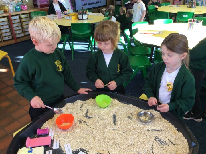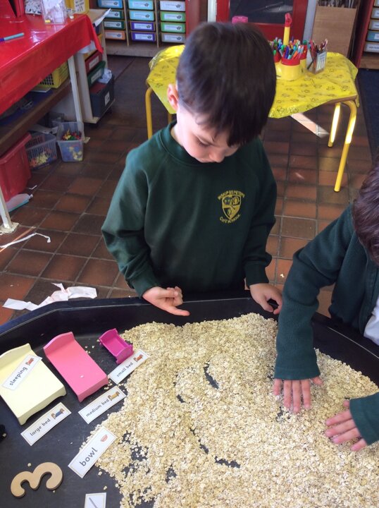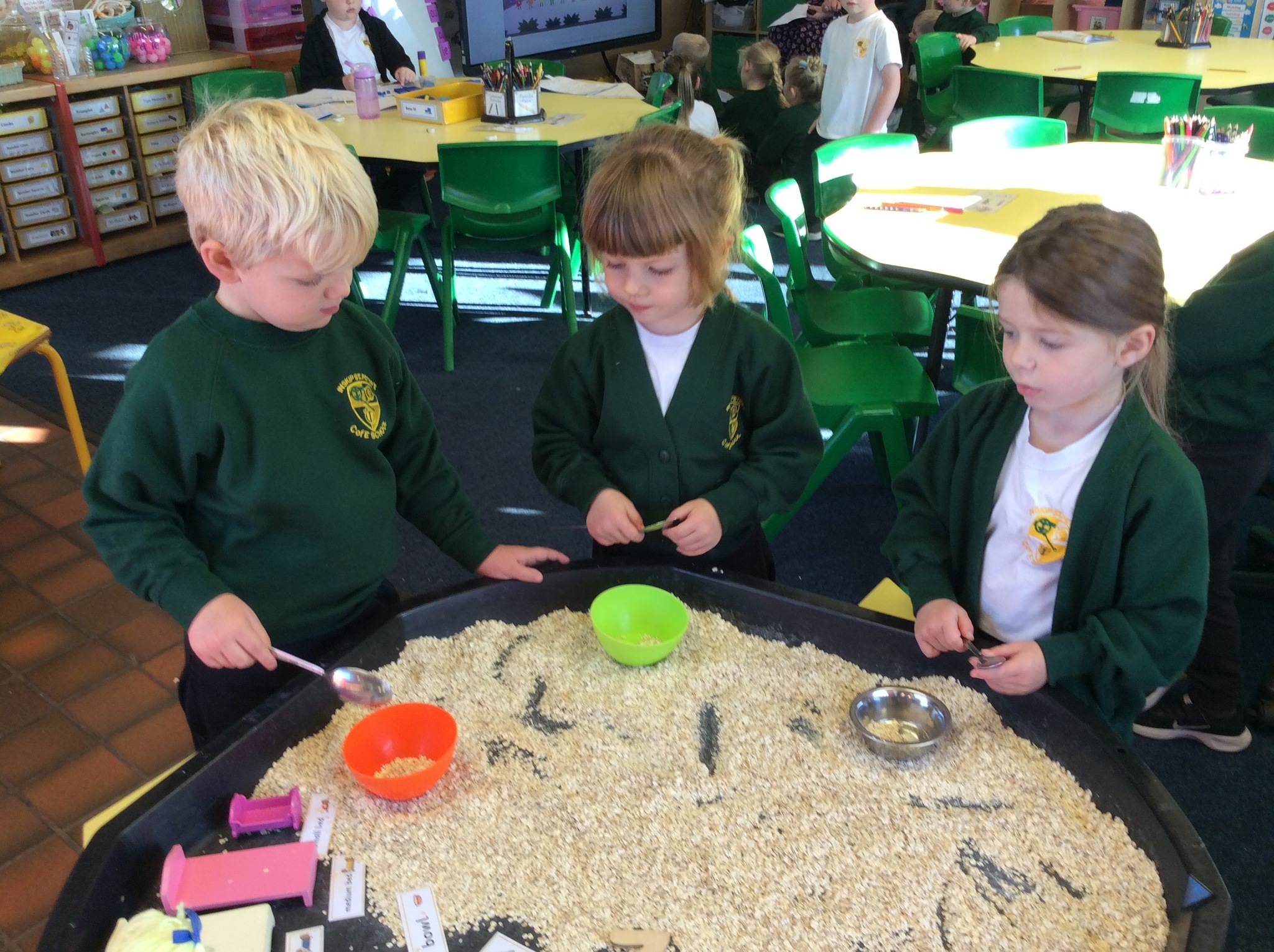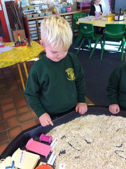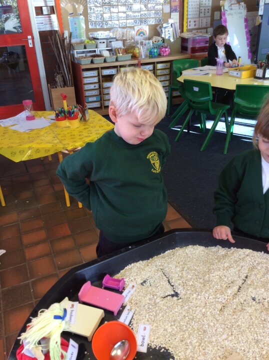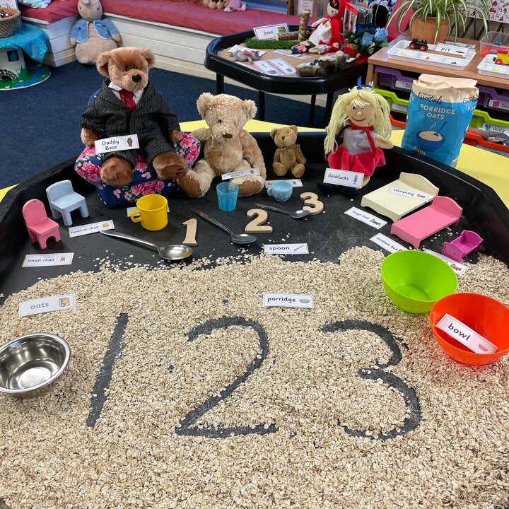 In their maths learning the Reception children have been learning about the numbers 1,2 and 3. Take a look at these photos where they played in the Goldilocks and the Three Bears themed tuff tray...