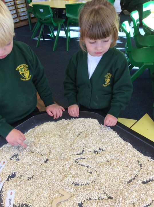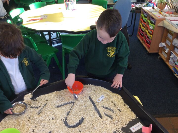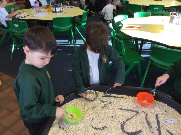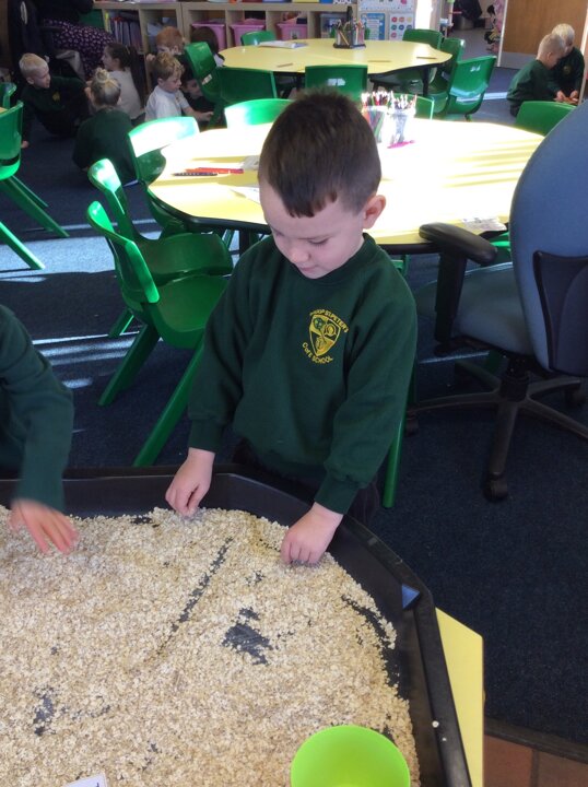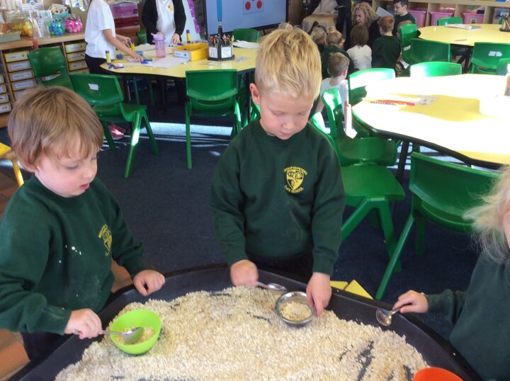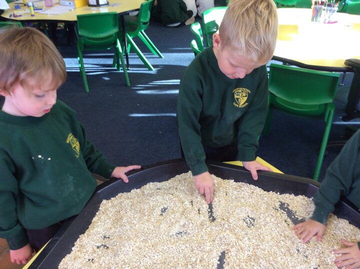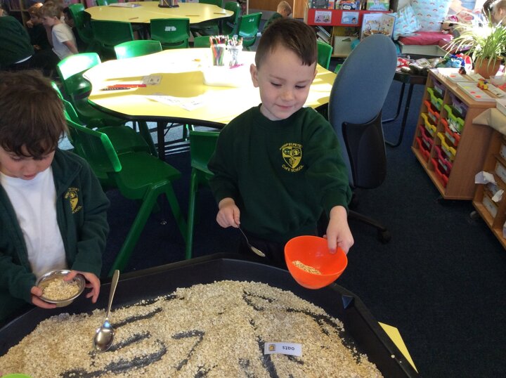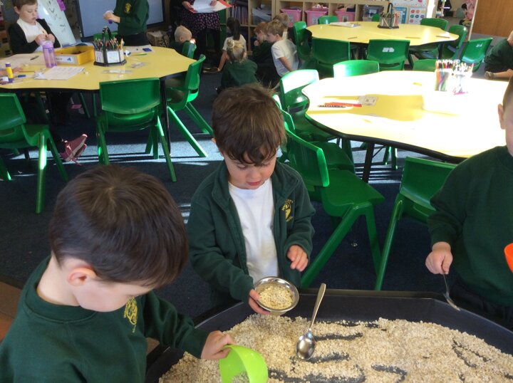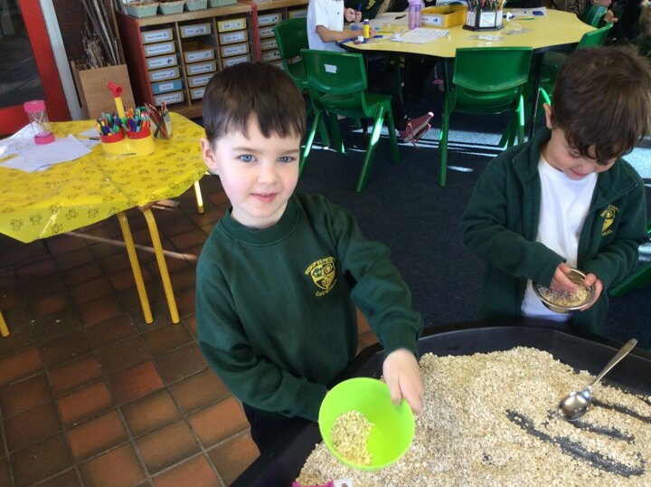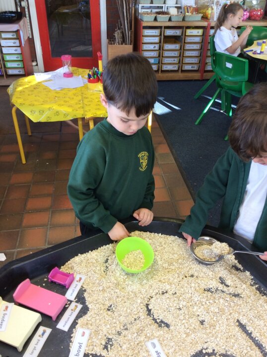 In their maths learning the Reception children have been learning about the numbers 1,2 and 3. Take a look at these photos where they played in the Goldilocks and the Three Bears themed tuff tray...