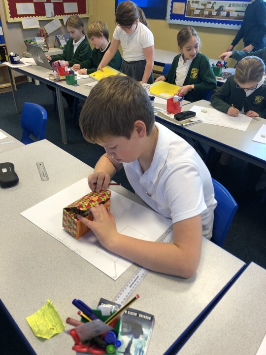 Today we got designing and creating our mood boards for our treasure boxes/memory boxes. We had to think about what shape of box we wanted, the decoration on the outside and what the net for the 3D shape would look like. We looked for inspiration using the Swiggle search engine, looked again at the disassembled boxes and thought about what we wanted to keep in our boxes so that we got the right dimensions. All really good fun! Next week’s lesson will be the beginning of the making process-even more exciting!