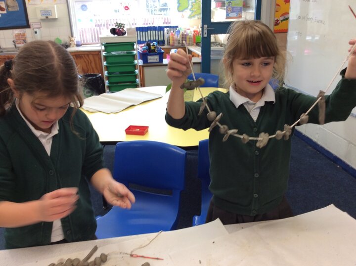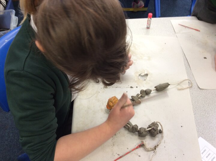 We began the lesson by looking at some of the archaeological findings from the area. We considered what materials they had available and how they might have gone about making their jewellery.