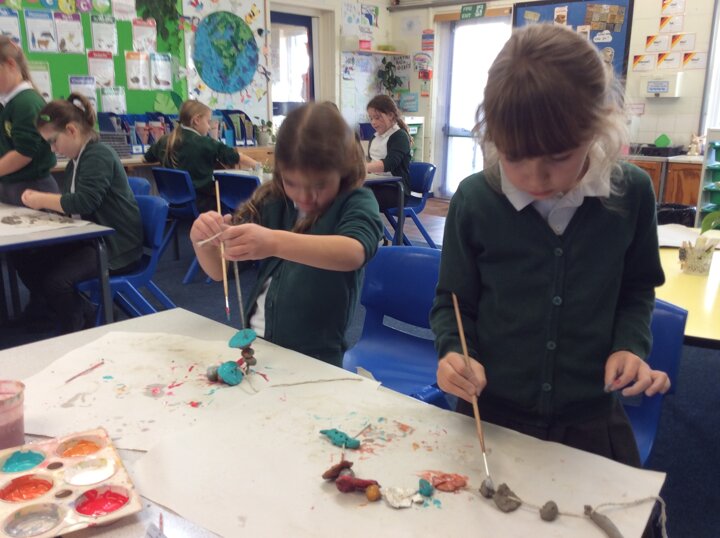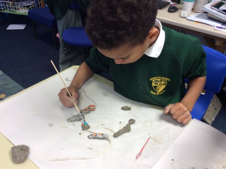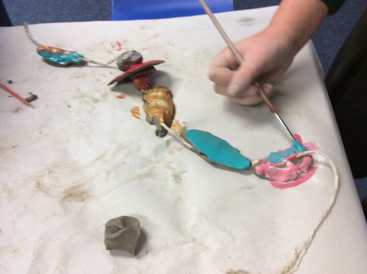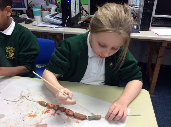 Children had a wonderful time moulding the beads, threading them and then painting them with interesting patterns and designs.