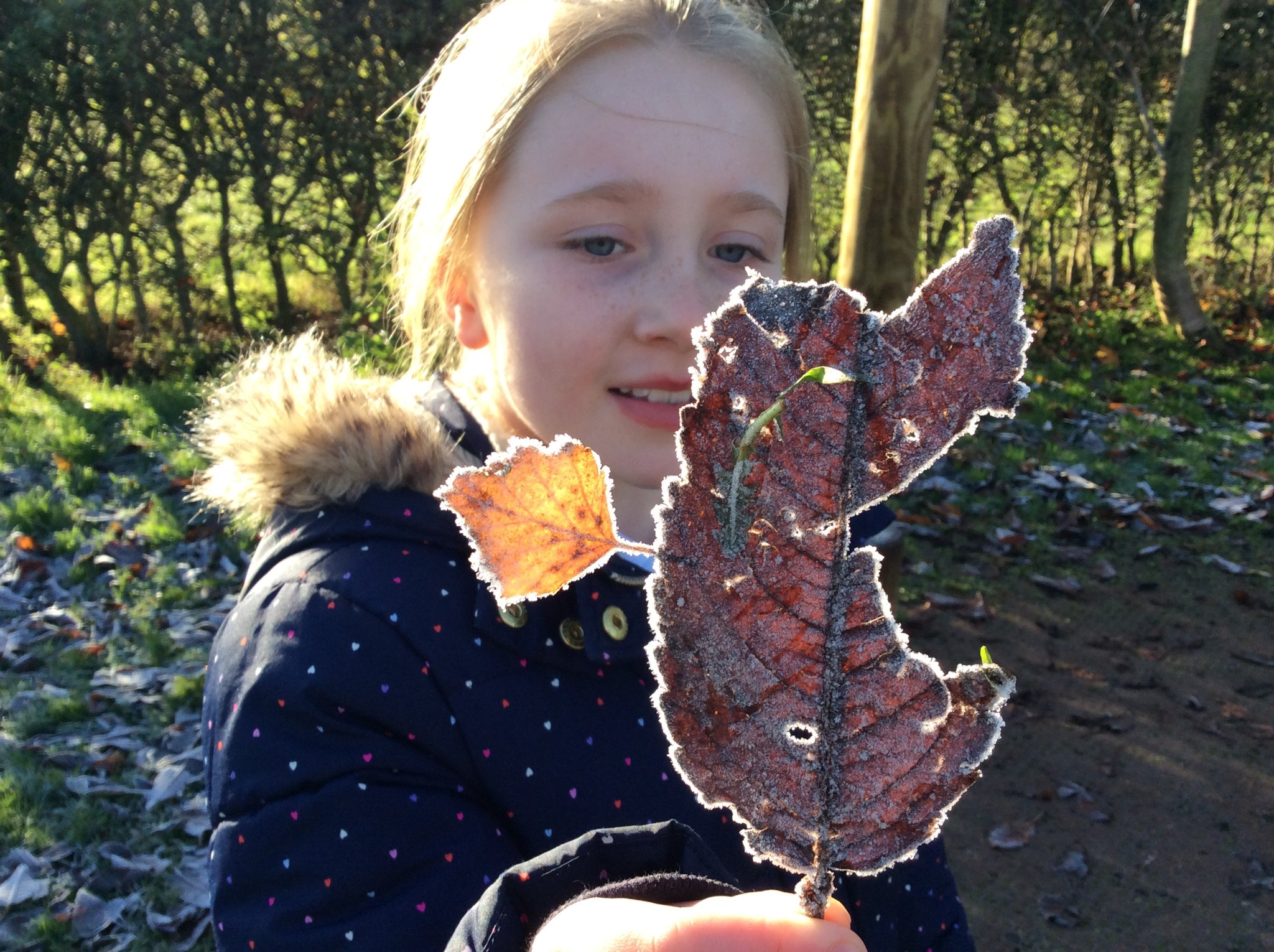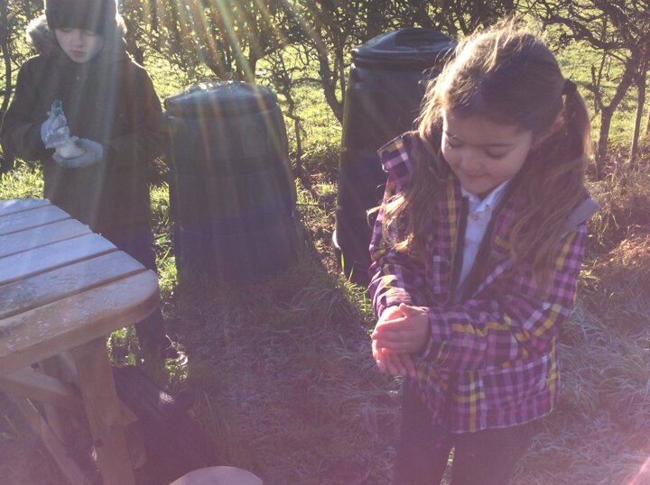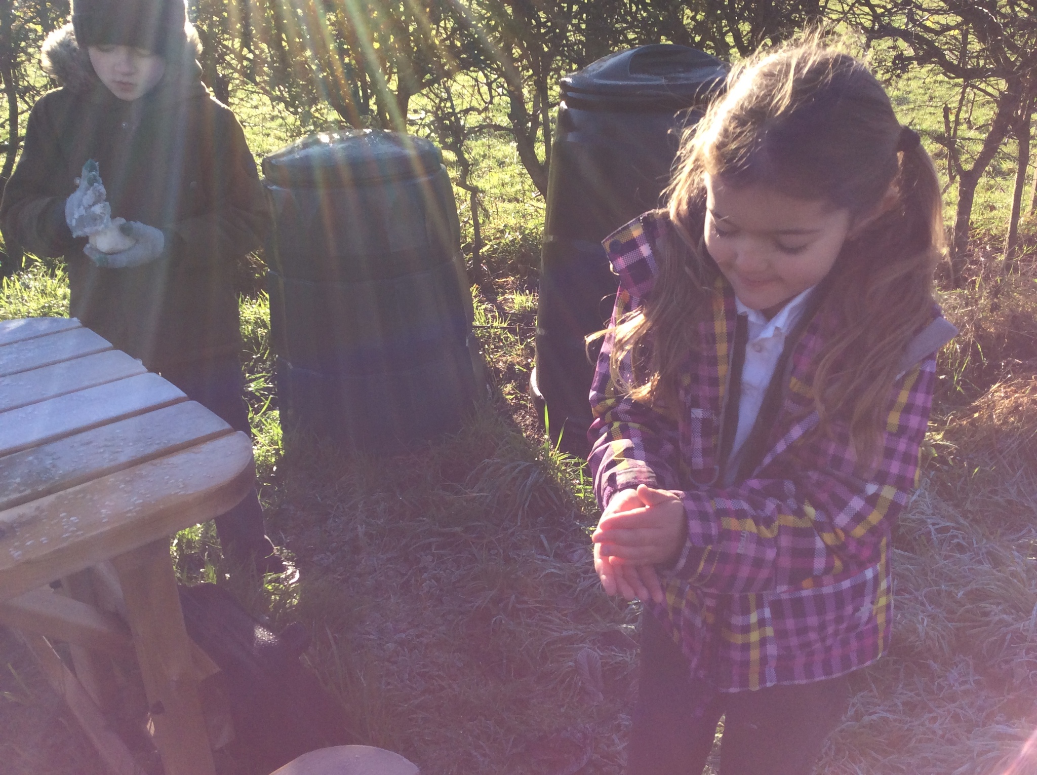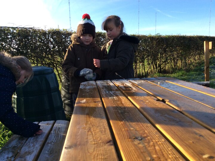 The weather took a turn for the frosty and cold this week, however this didn't put middle school off playing and exploring nature during their playtime. The children were fascinated by how the frost had covered everything! They carefully looked at ice crystals on leaves and grass and noticed how crunchy they were. Some children found frozen water droplets while others gathered frost into balls to create a mini 'frostman'.