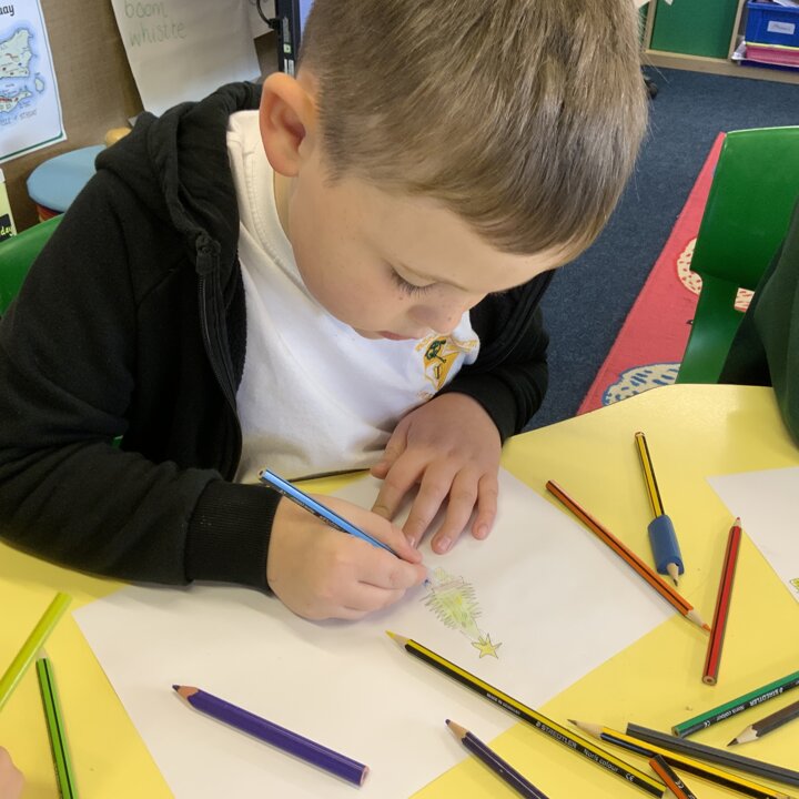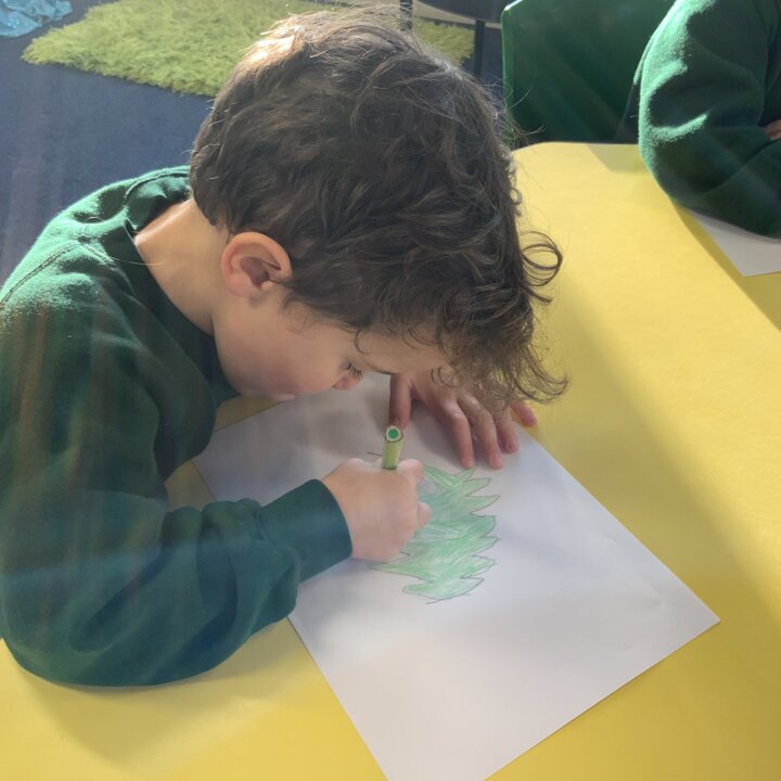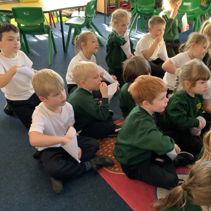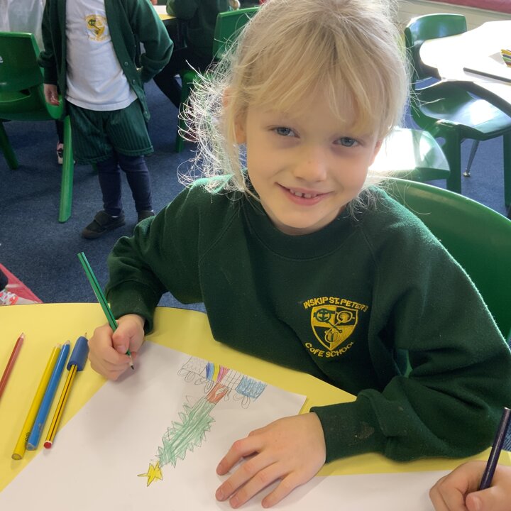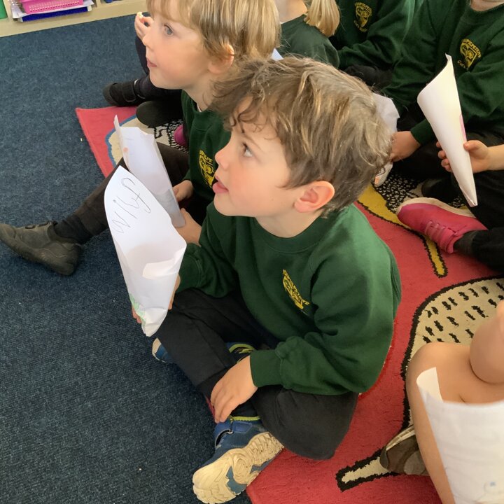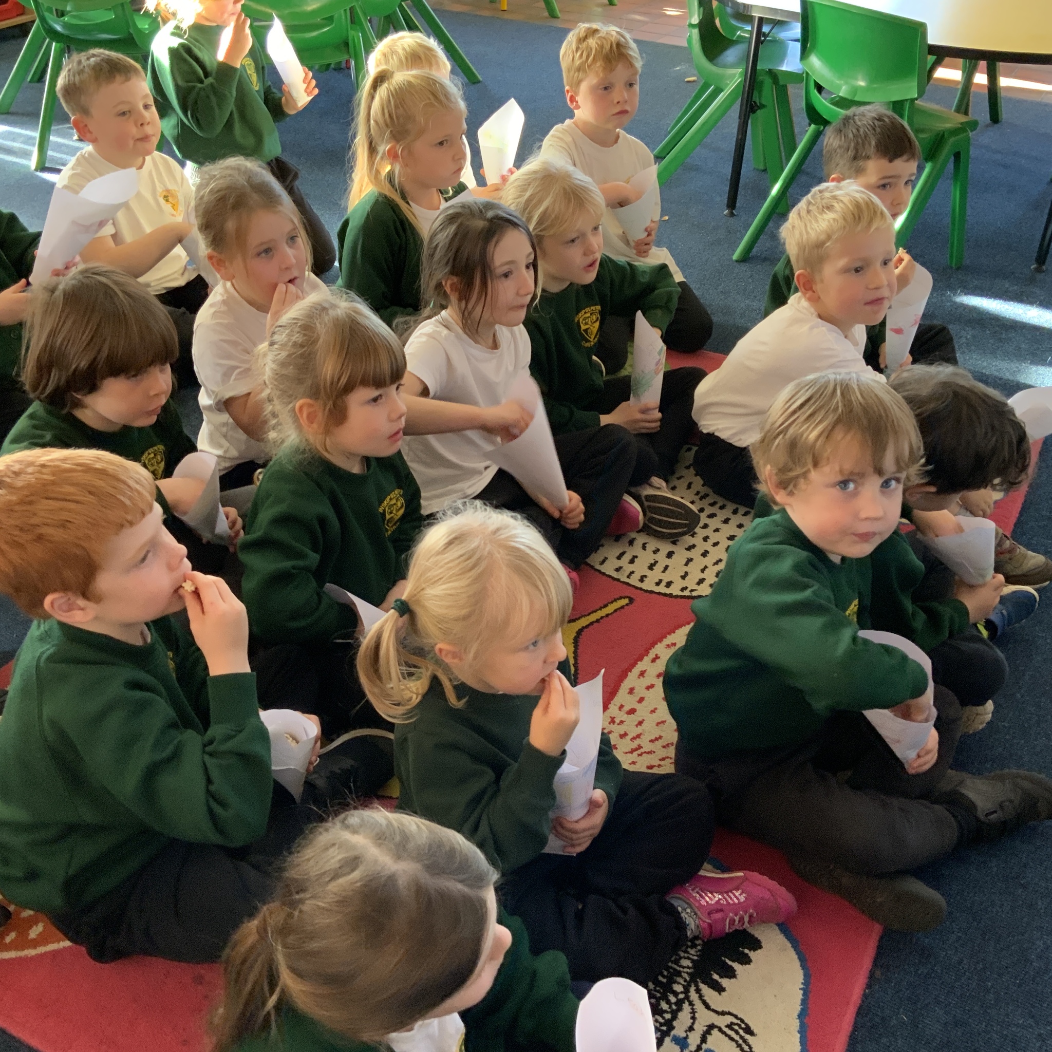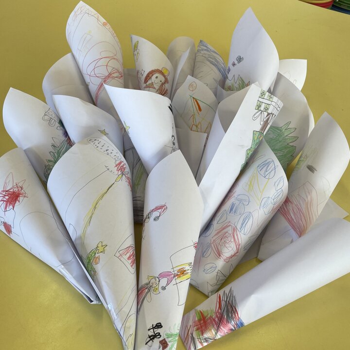 Before we watched the film the children decorated a piece of paper with Christmas designs which we turned into cones to hold popcorn and then we got cosy and enjoyed our treat.