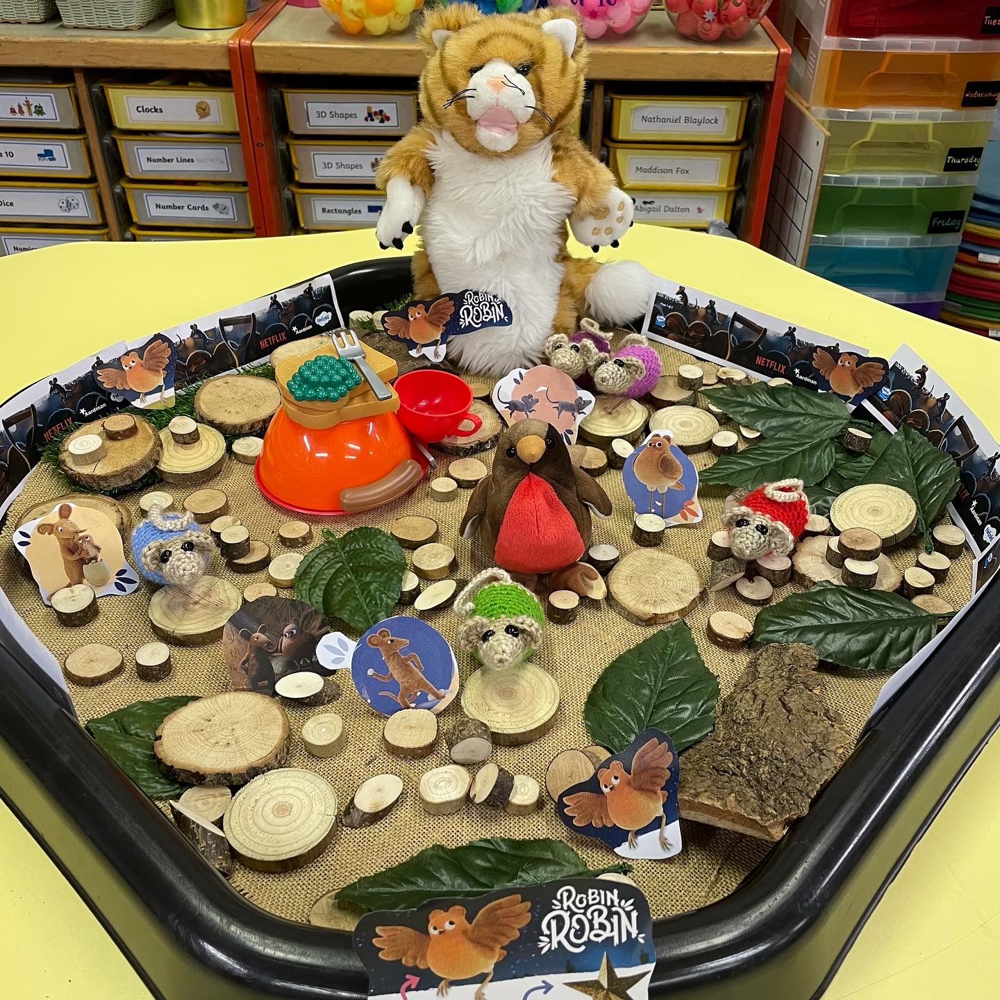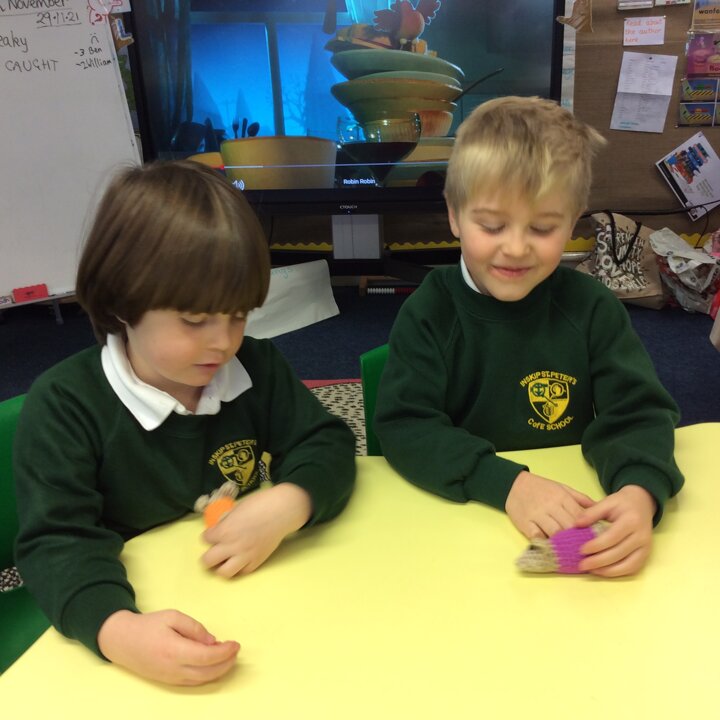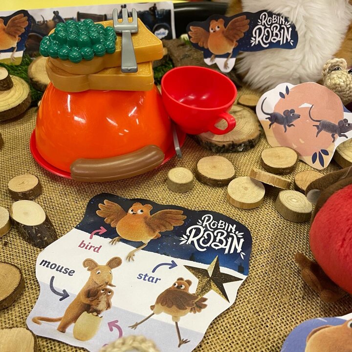 We have been learning how to use bossy verbs and give instructions this week and using the tuff tray to act out and make up more stories about Robin and her family of mice.