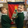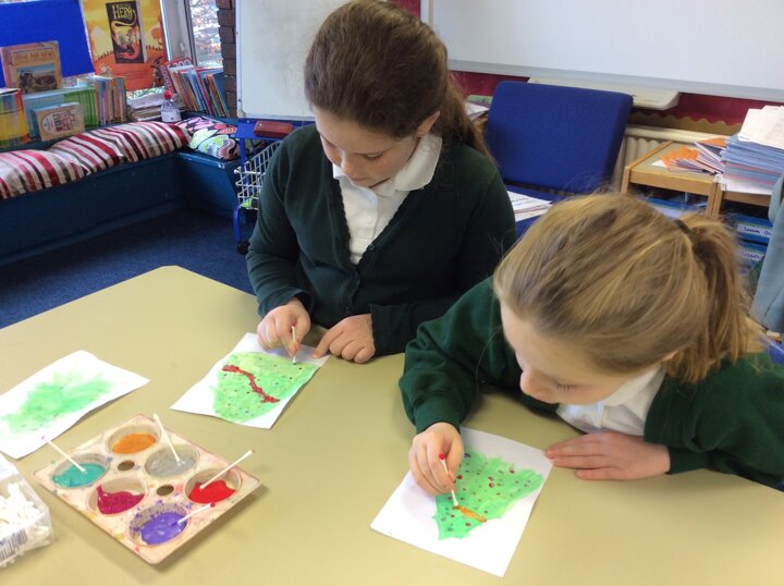 Children each made a Christmas tree painting, a beautiful angel and some snowflakes!
