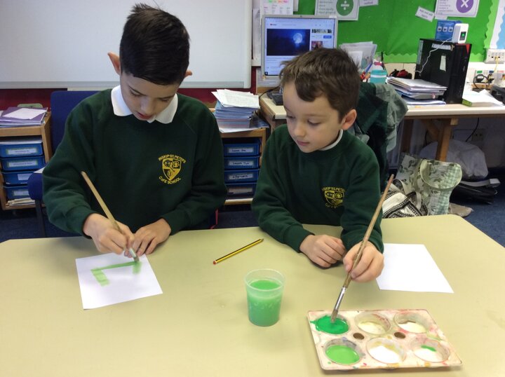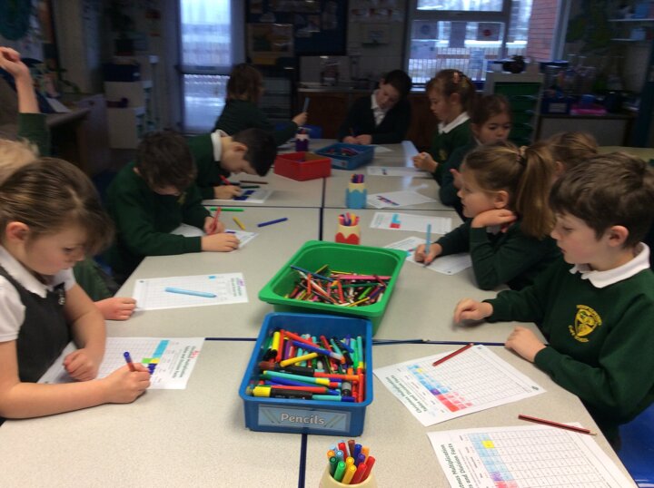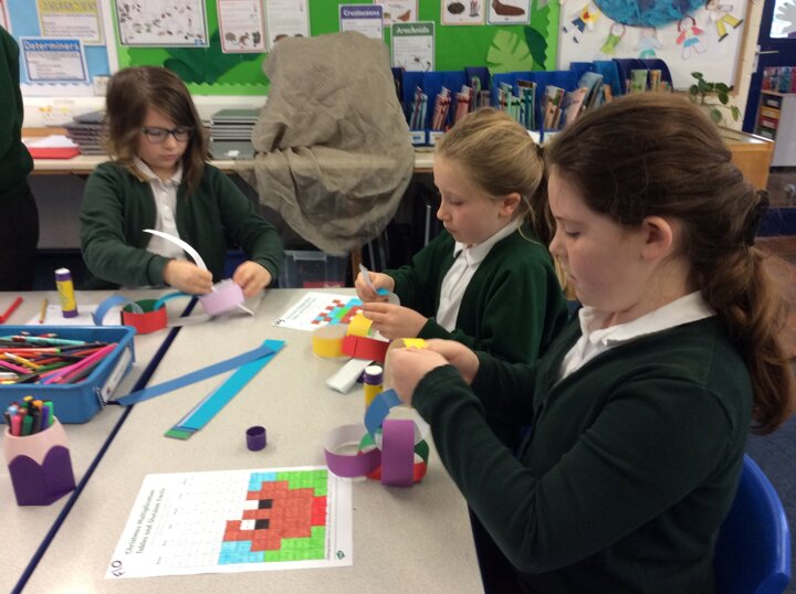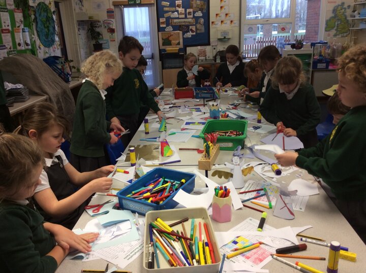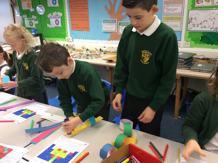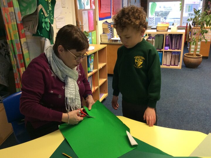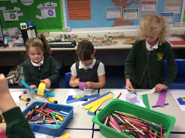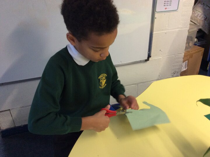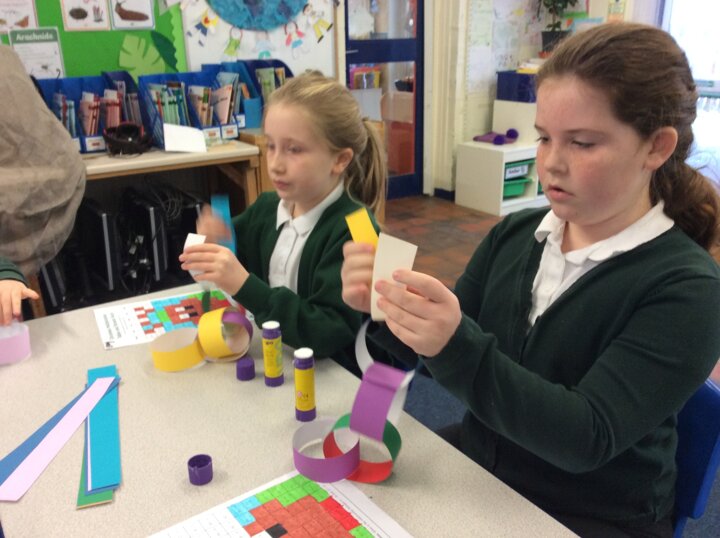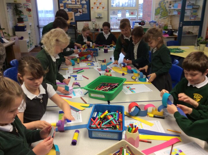 Children all sat on one big table to colour, cut and create. We made a huge paper chain together that was 20 metres long and stretched all of the way down the corridor!