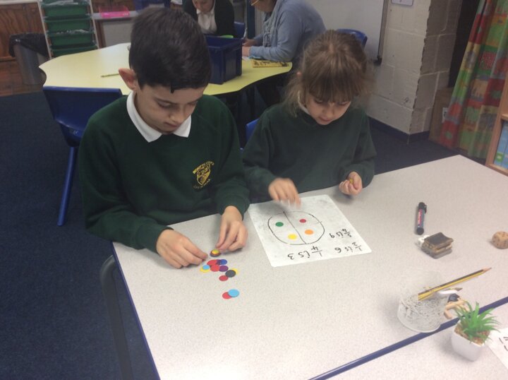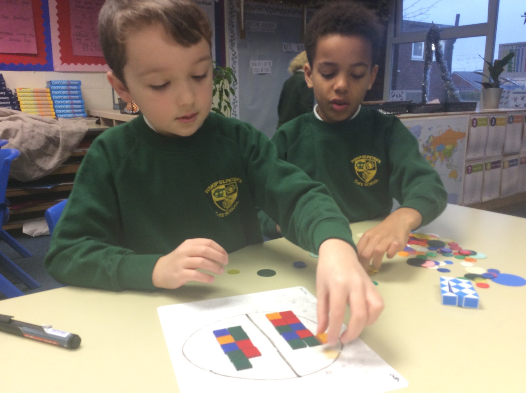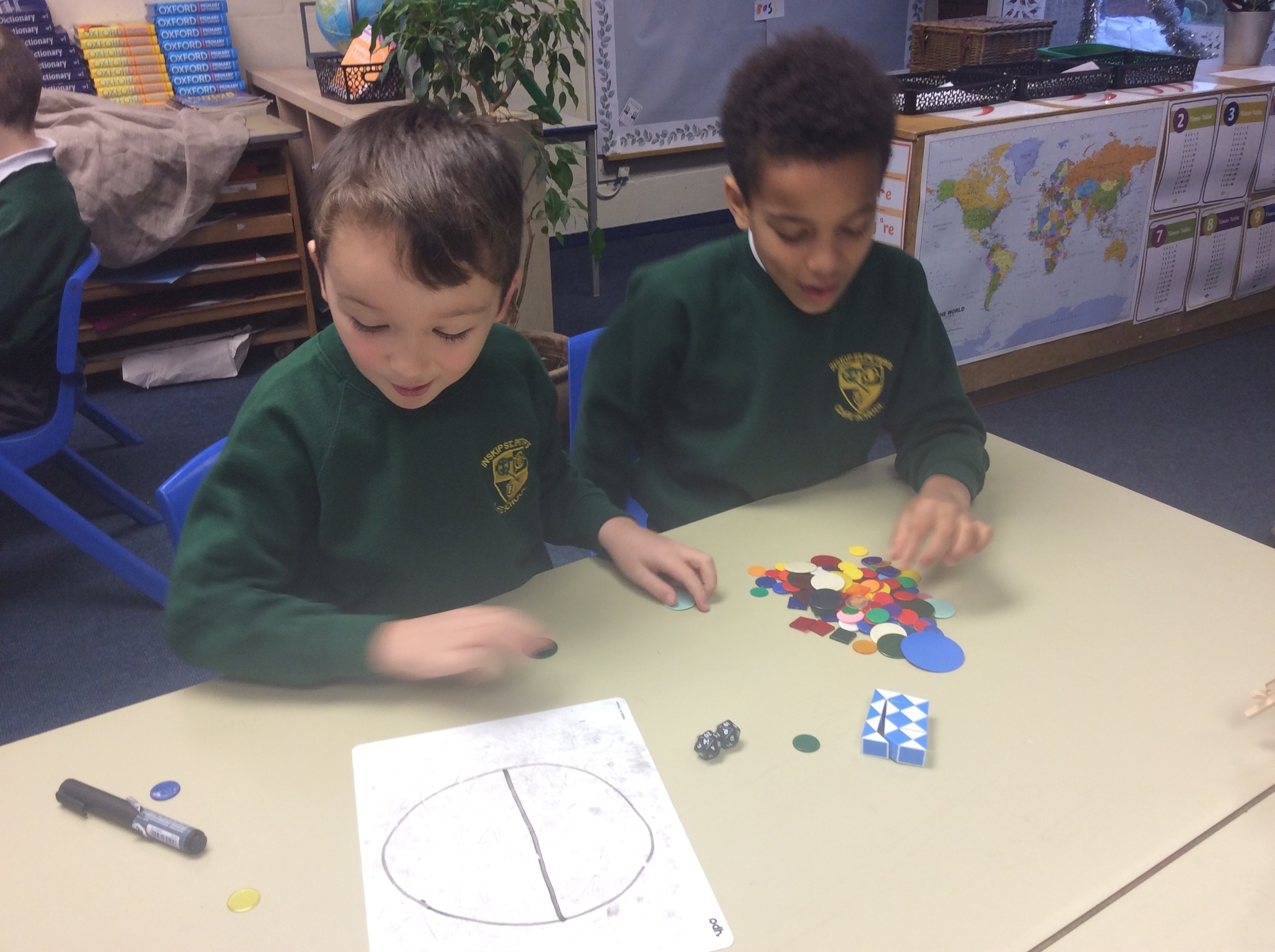 Children have been introduced to fractions this week, using practical methods to understand how numbers and shapes can be split into fractions. Children particularly enjoyed using whiteboards to draw fractions out and splitting amounts using counters.