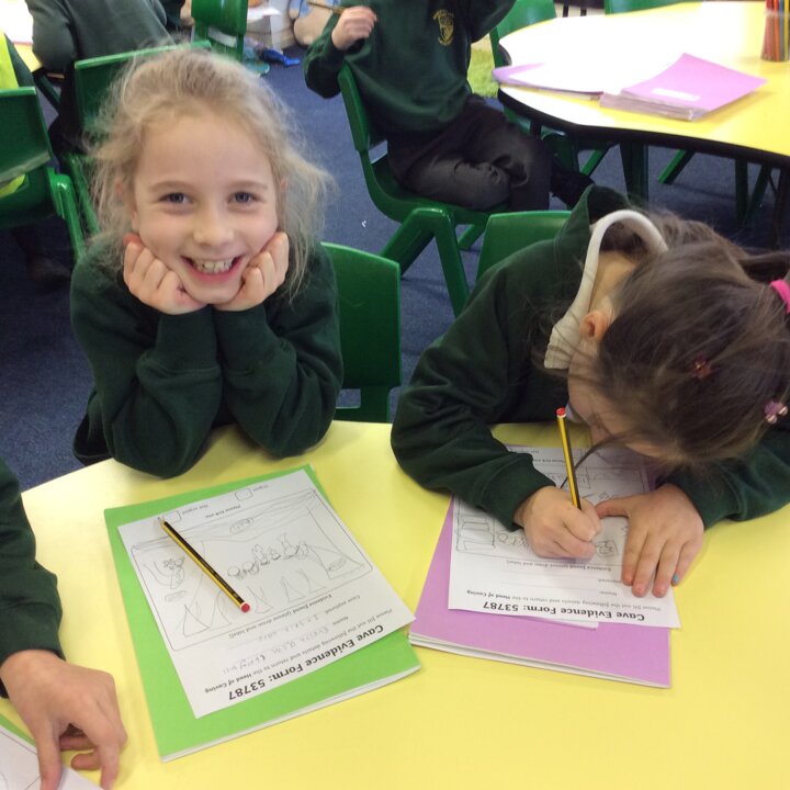 They found some interesting things … bears, dynamite, rocks! Then they recorded their findings before writing some great descriptions of inside a cave.