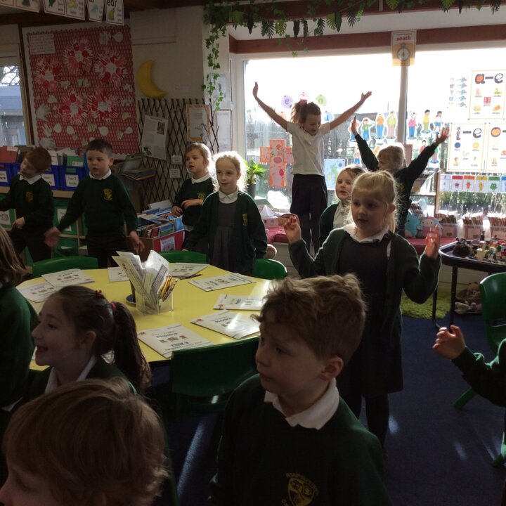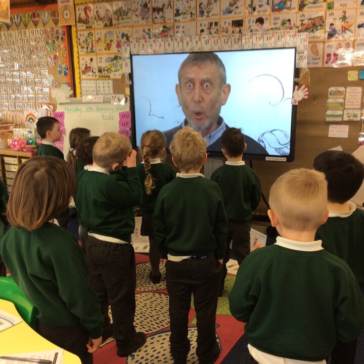Most of the children are already familiar with the story and it is one of our favourites so we made it extra special by performing it with Michael Rosen (see the photos). The children really enjoy performing it (we have done it a few times this week) and we have noticed the poetry in the story and how Michael’s extra beat makes it a little bit like a rap.