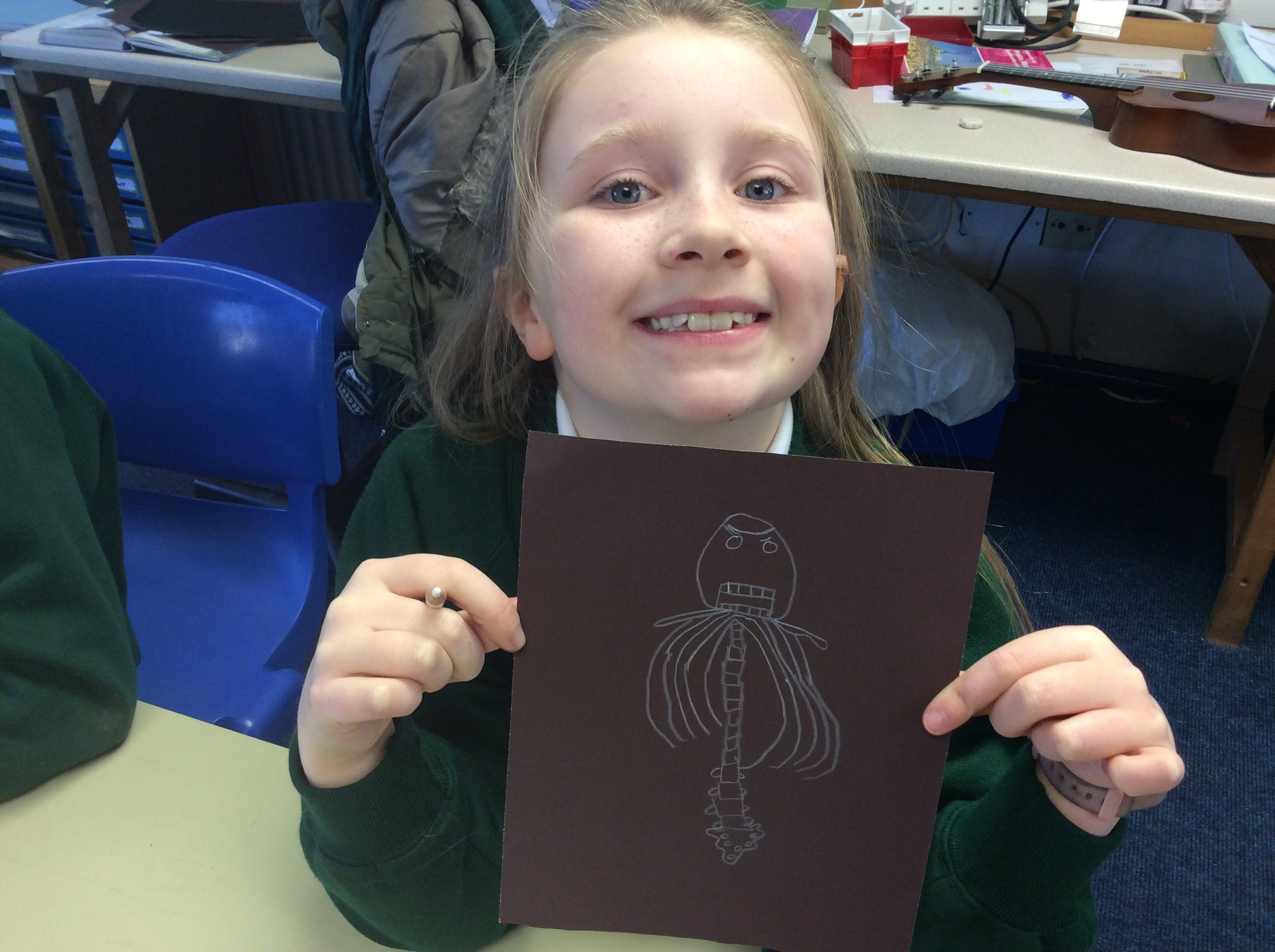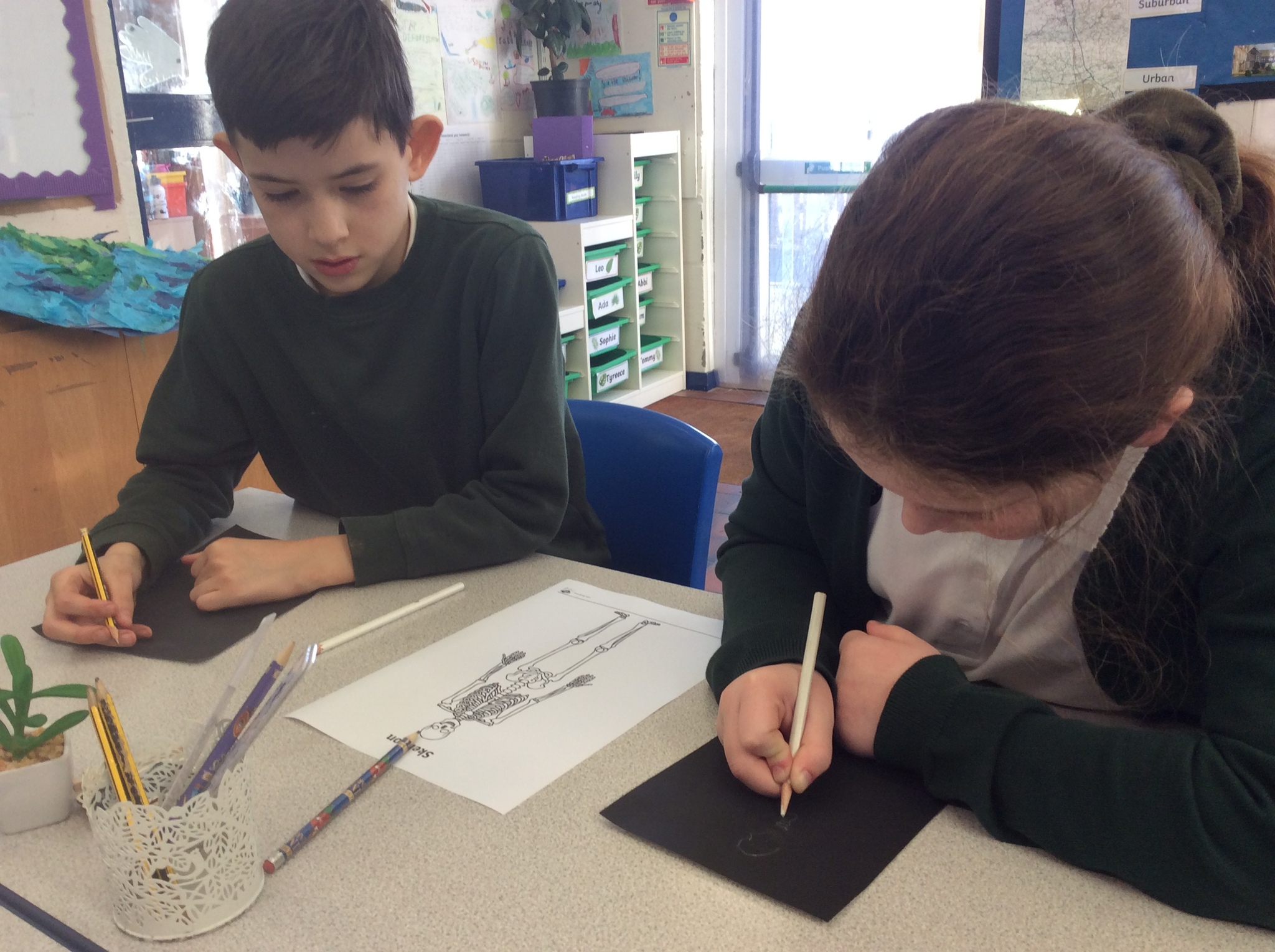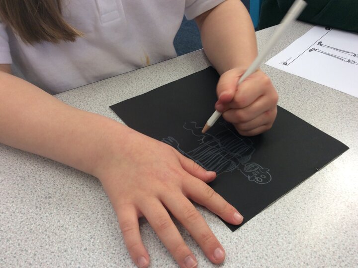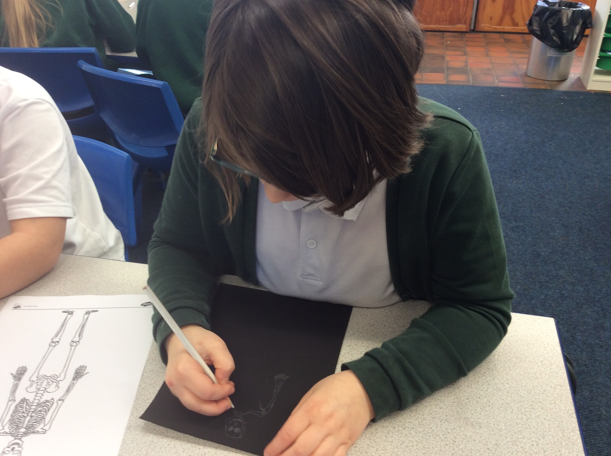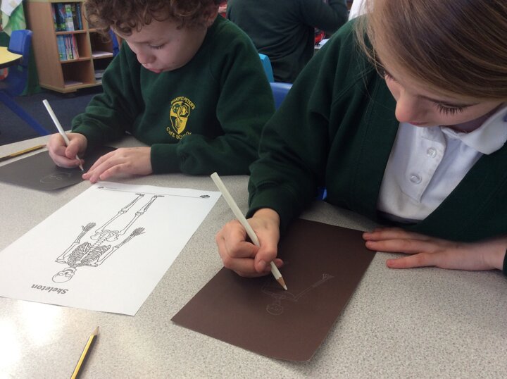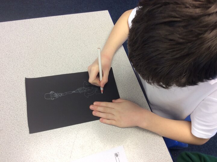 As we drew out skeletons onto paper, the children soon discovered that they were quite tricky to draw and had lots of bits and pieces to them! However, we all managed to draw a fantastic skeleton by the end of the lesson and label them with some names of the bones in our bodies.