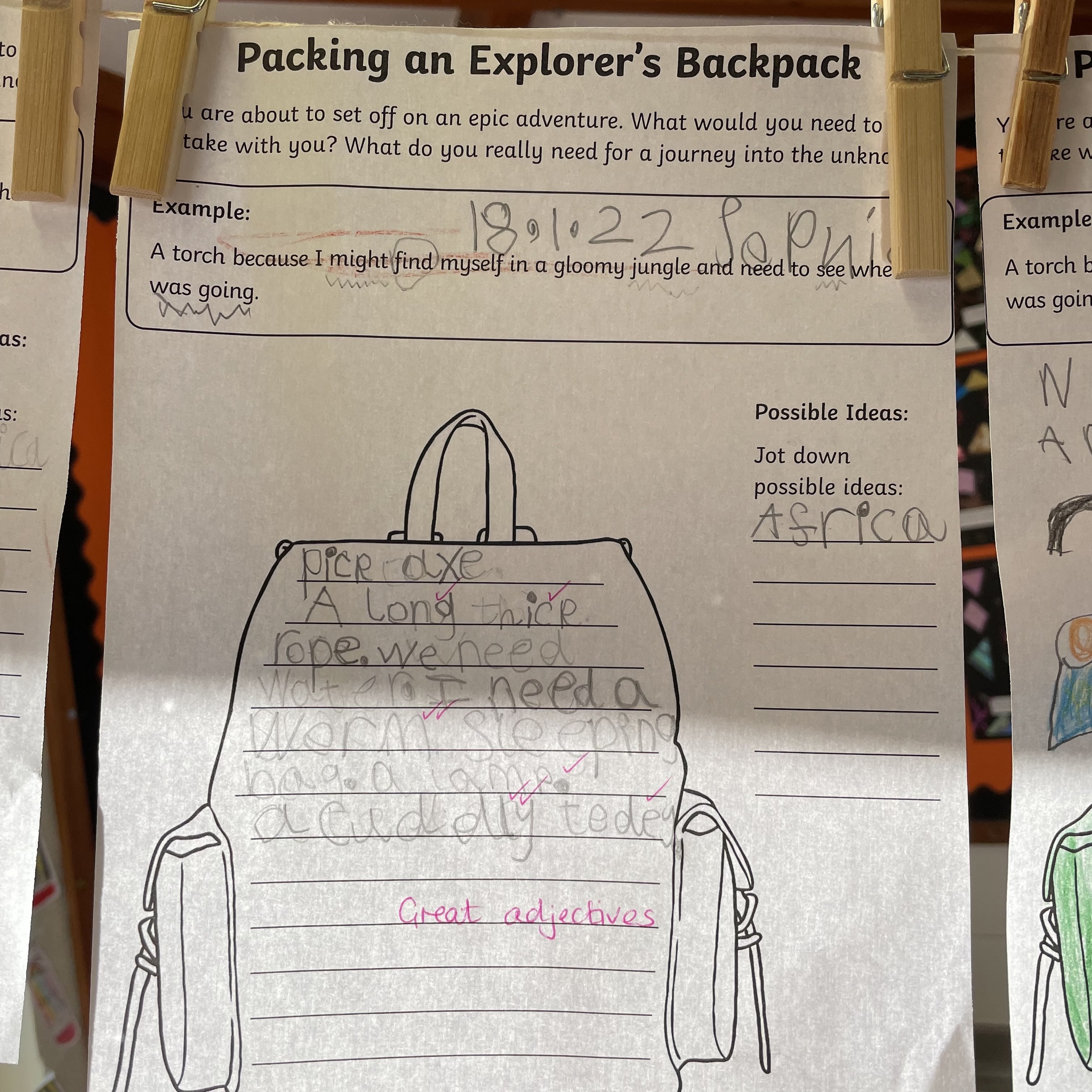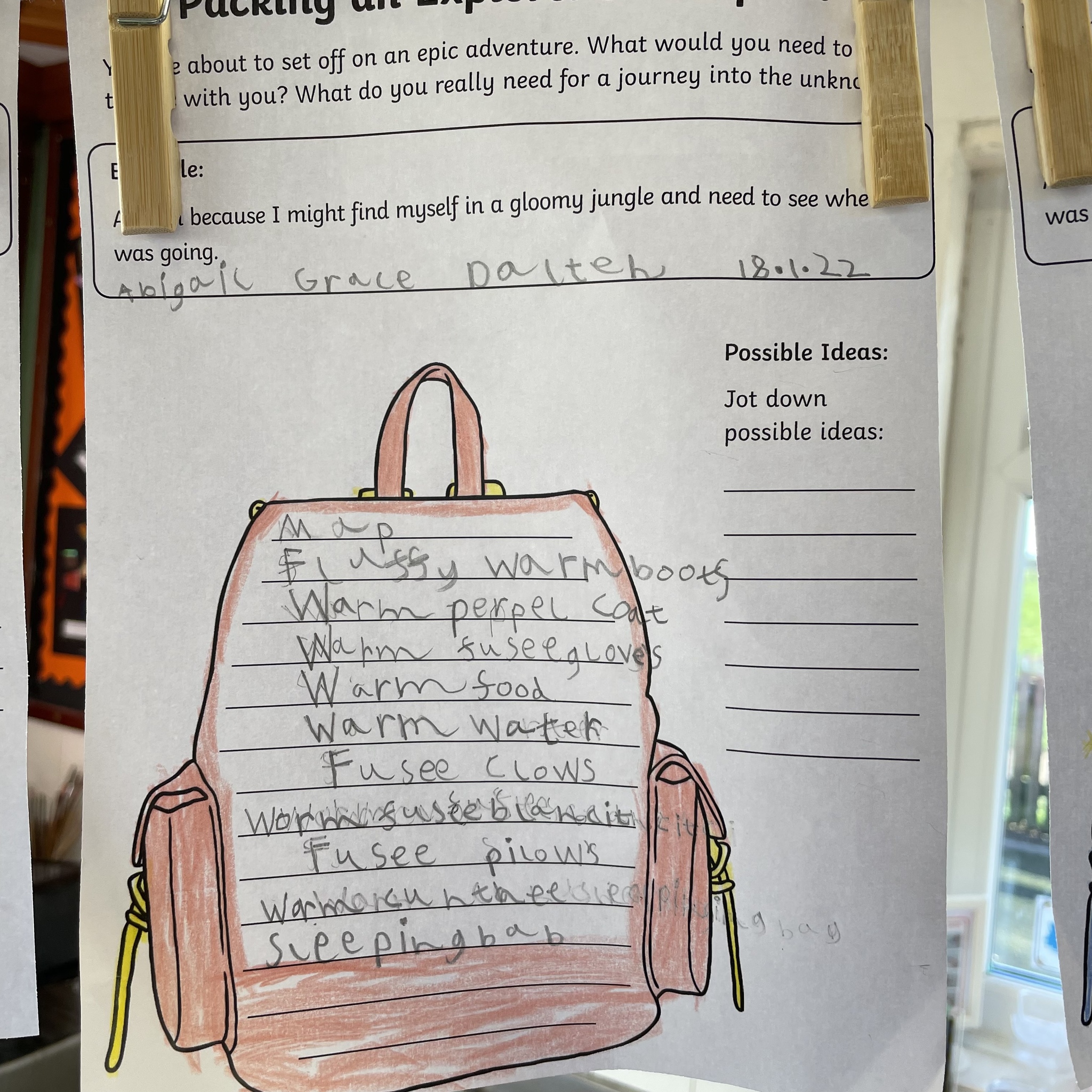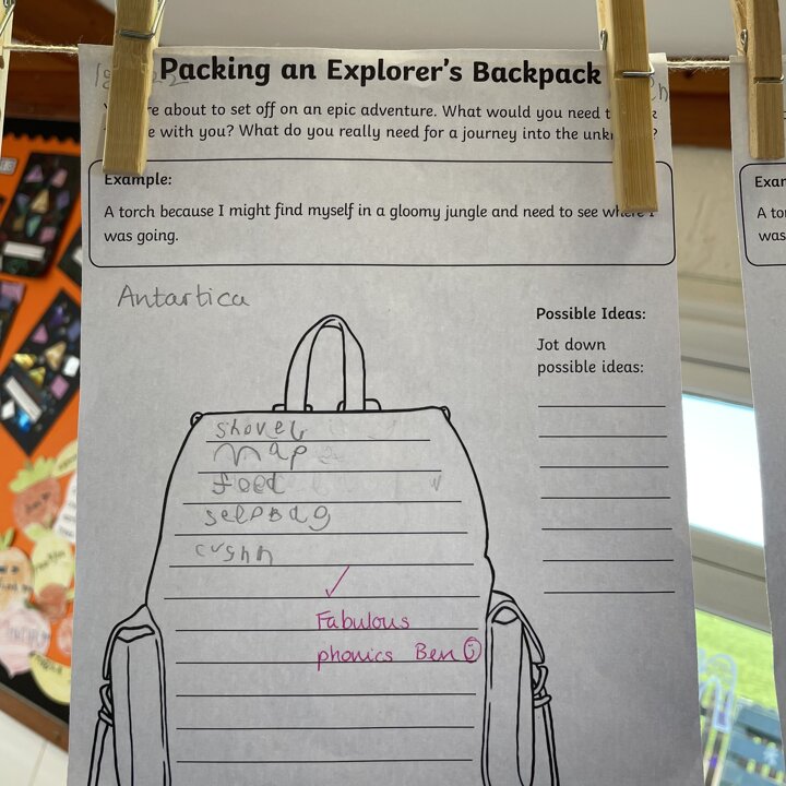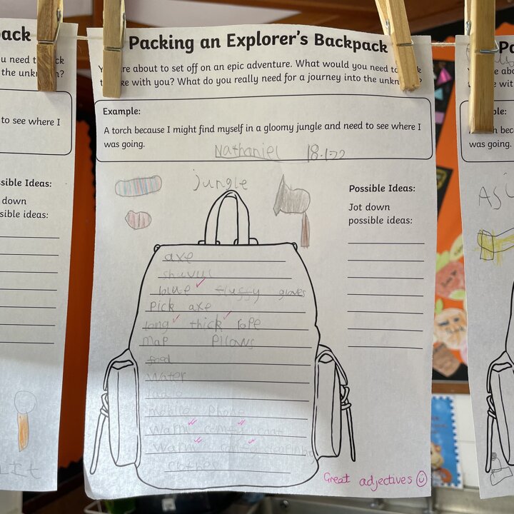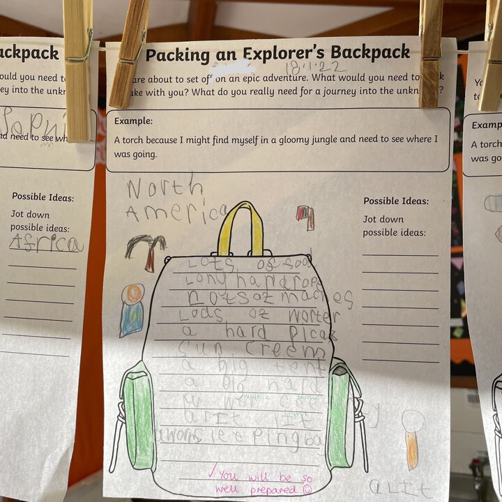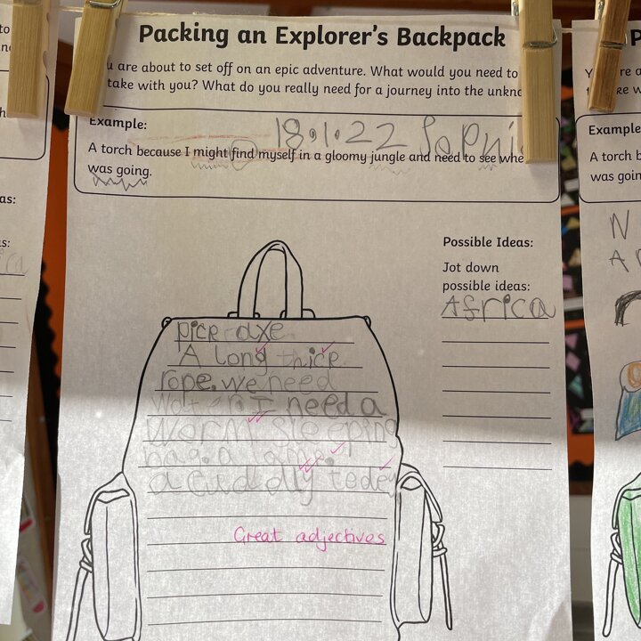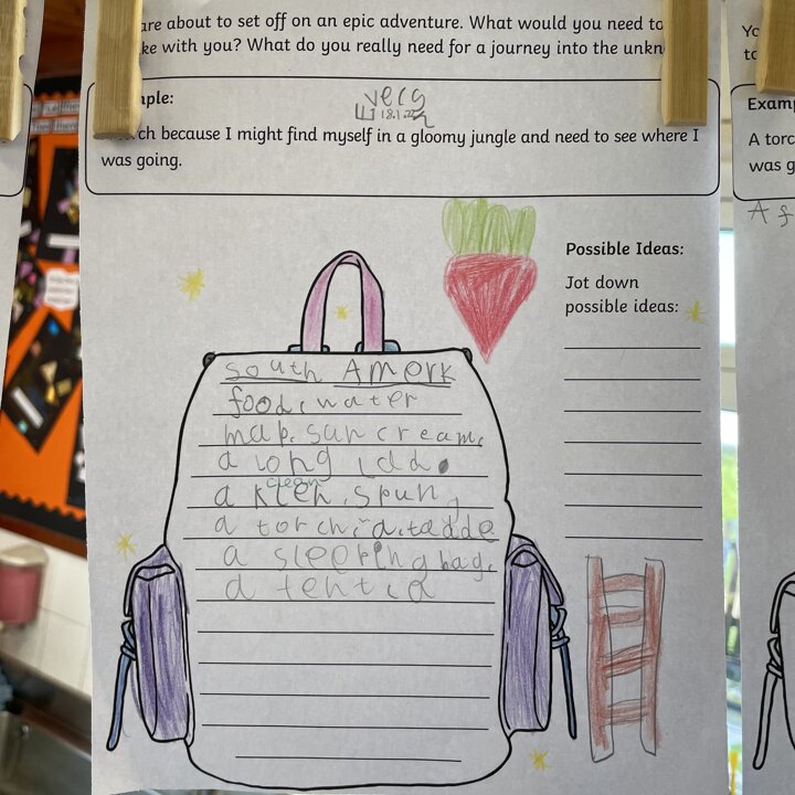 I love how so many of the children used adjectives to describe the items they’d take with them after we have been concentrating on learning how to use the in our English lessons. Great cross curricular writing!