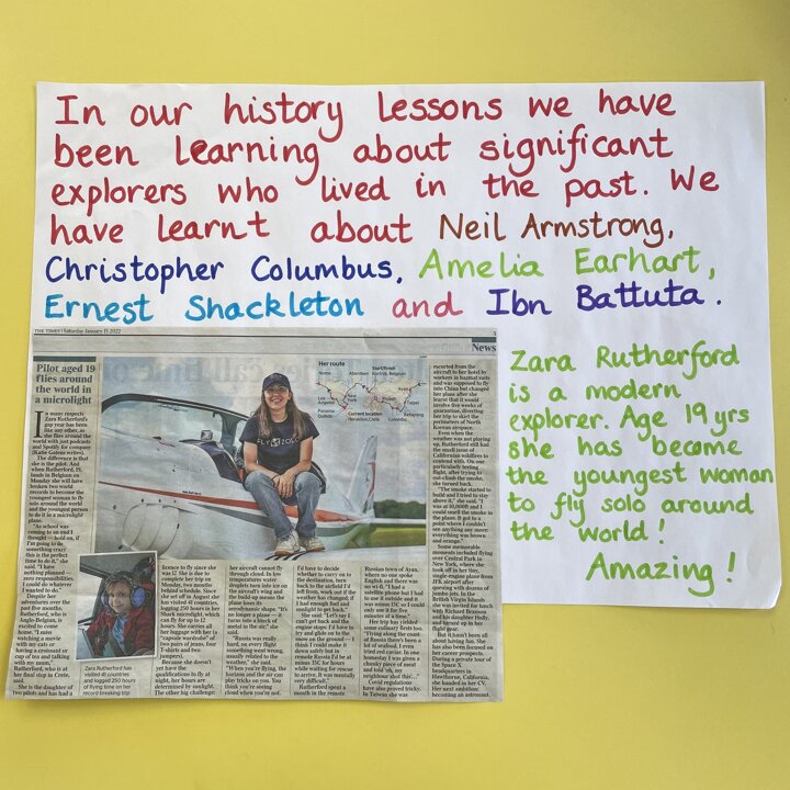 To finish our history learning (looking at significant explorers in the past) we looked at a modern explorer this week. Zara Rutherford has just broken records to be the youngest woman at 19yrs old to fly around the world solo in a microlight this week.