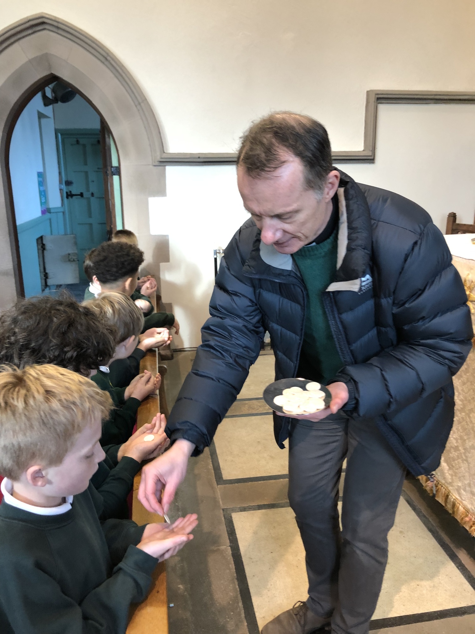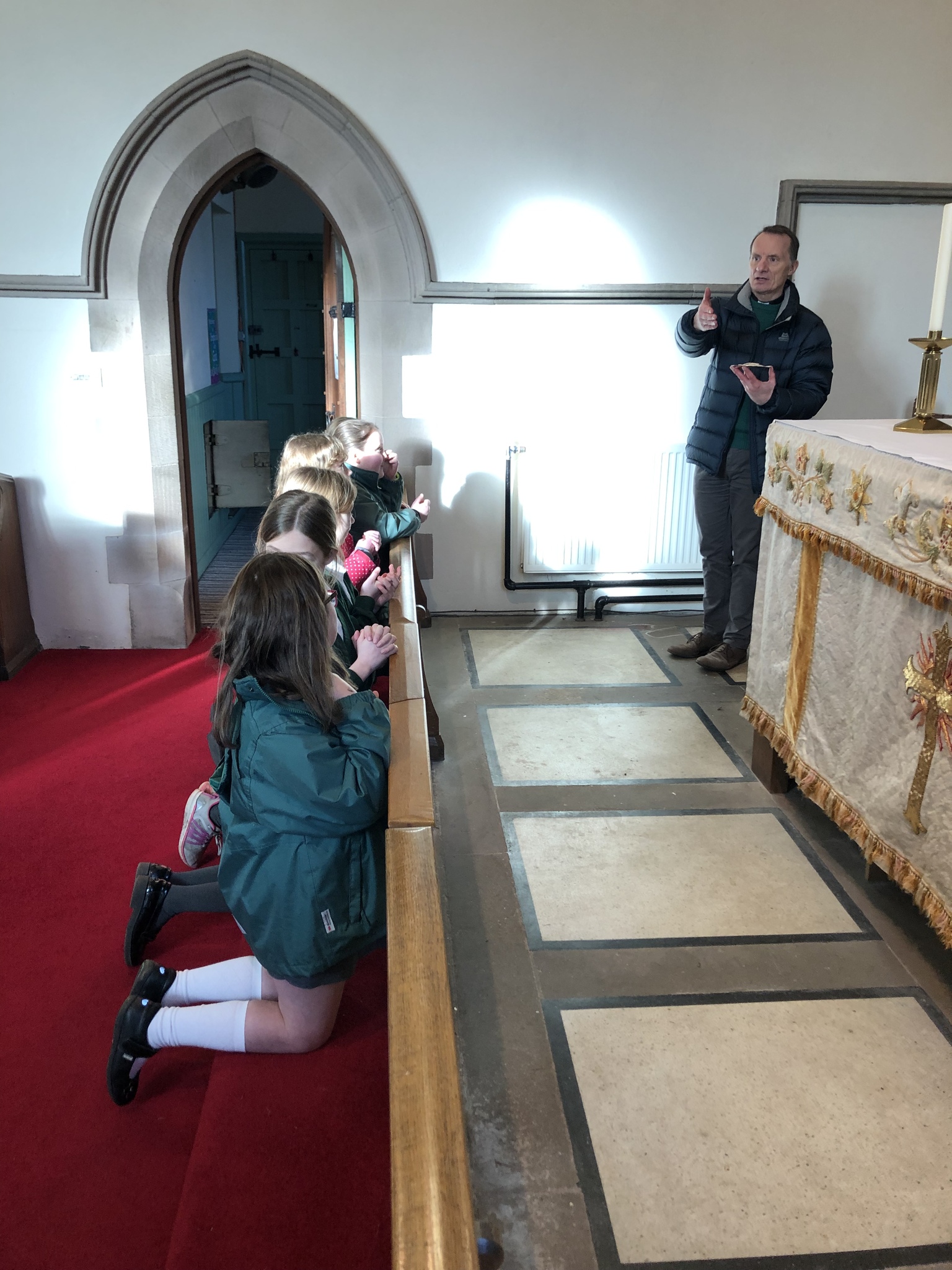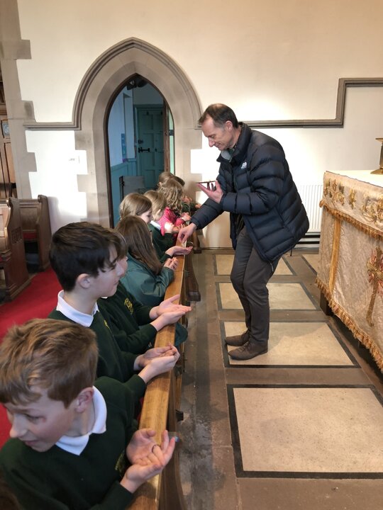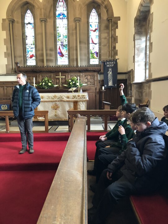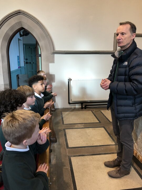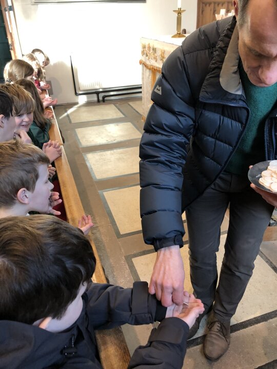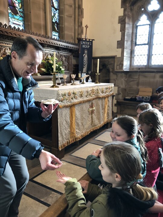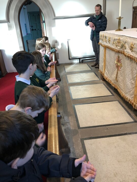 This afternoon the children of Upper School Class continued their learning about why Christians celebrate the Eucharist by visiting our church-St Peter’s where Rev Paul met us. We looked at the altar and the sacred Holy Communion articles. The children learnt some of the words spoken during the service and tried the communion wafer. The class learnt so much more from Rev. Paul and made good links between what they have read in the Bible and what they saw today.