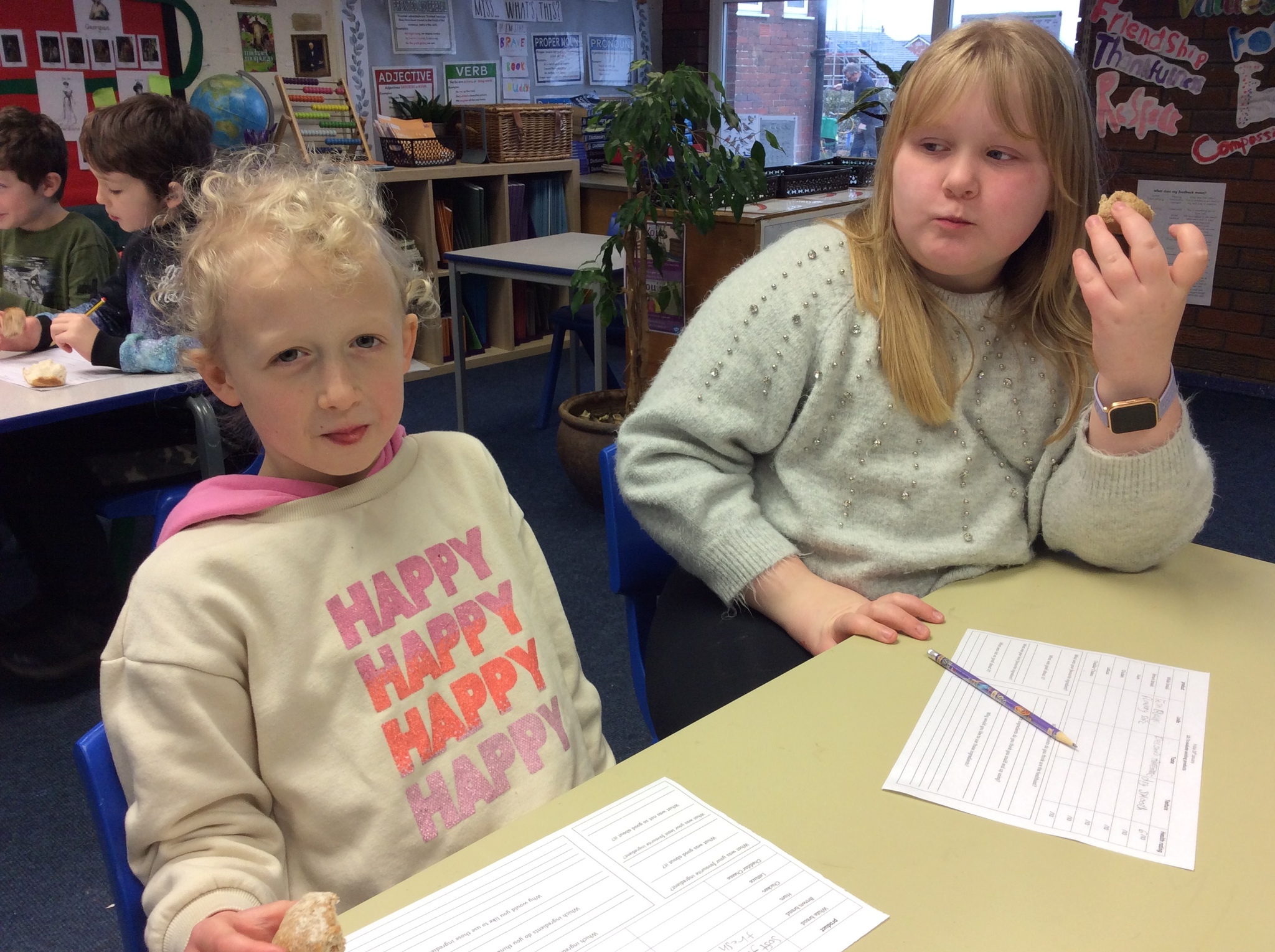 We considered the appearance, the taste and the texture of each of the ingredients as we tried them and recorded our thoughts. Next, we thought about how healthy we thought each of the ingredients would be and discussed how they would contribute to a healthy and balanced meal.
