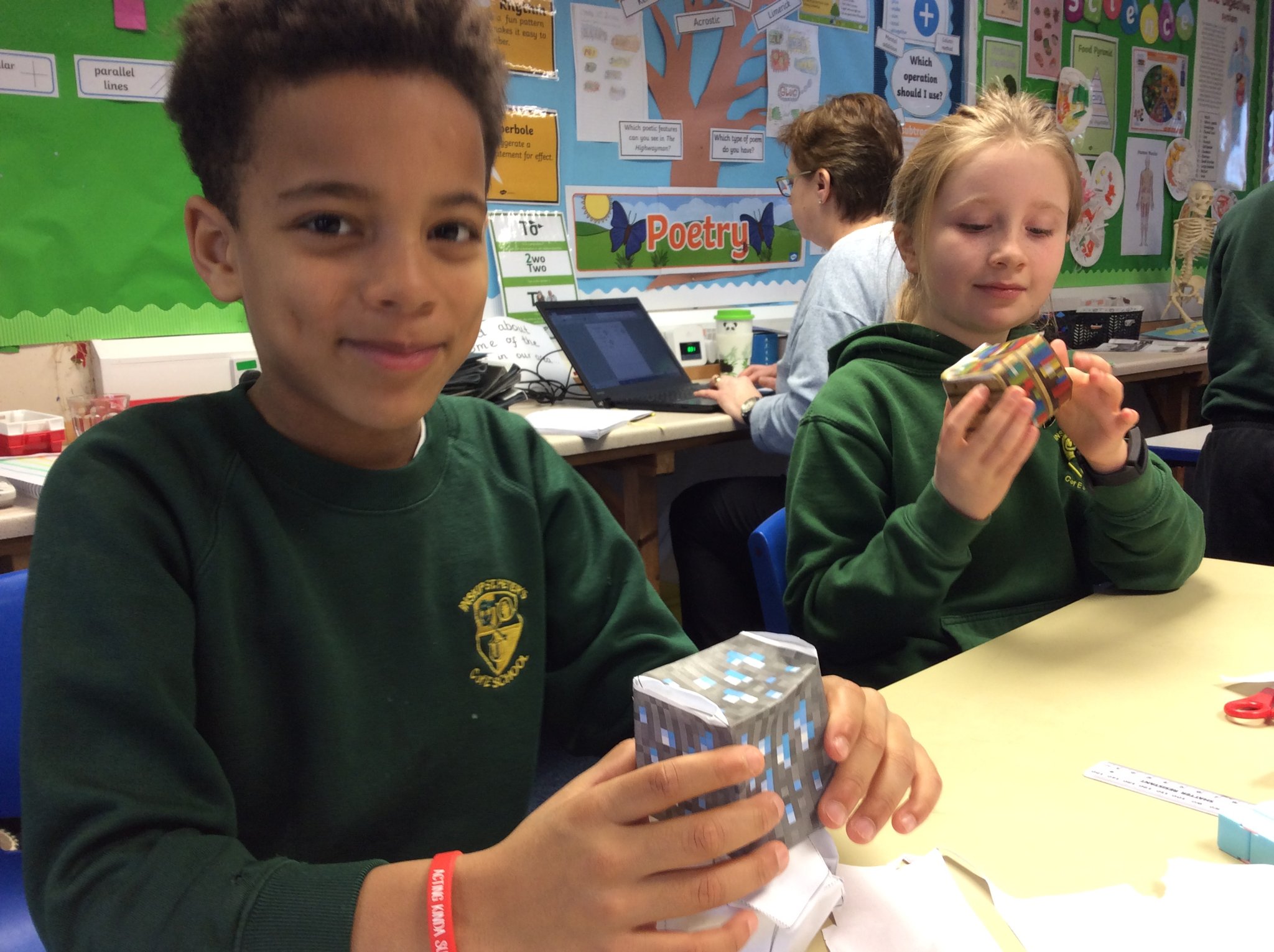Once the children had made their 3D shapes, they could use their skills to make their very own minecraft block!