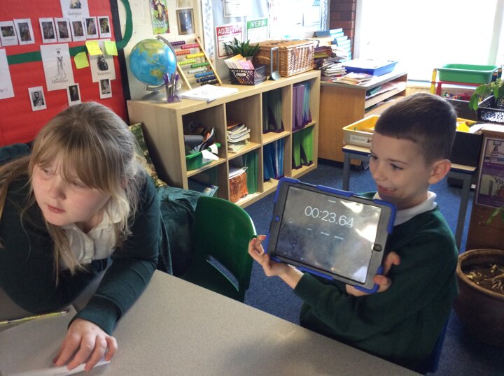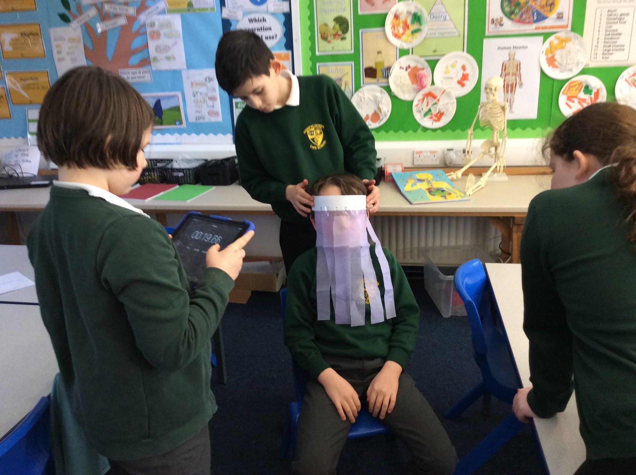 We decided to conduct an investigation as to whether children who do more regular exercise activities would recover their breath more quickly after exercising. Children took it in turns to record their resting breathing rate, using some torn tissue paper to help emphasise each breath. Once we knew our breathing rate, we took a lap of the field and recorded our breathing rates afterwards.