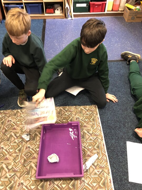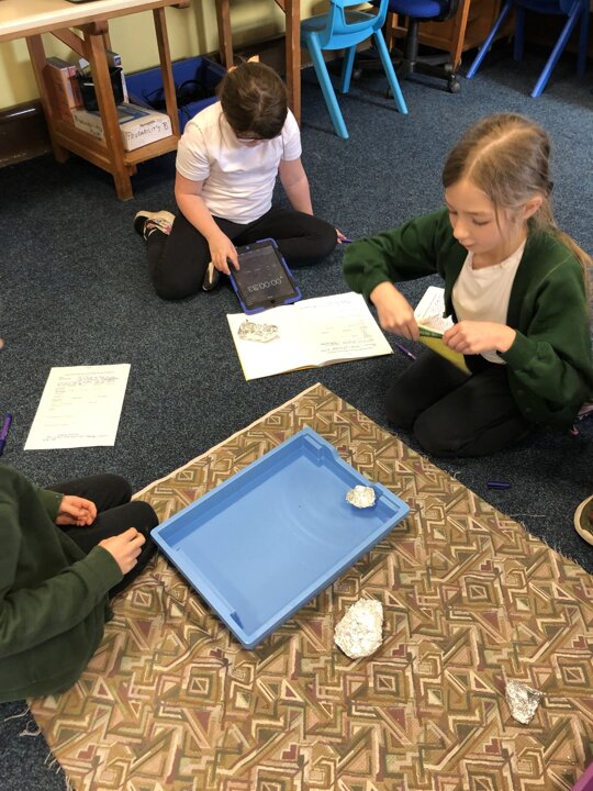 The Upper School children investigated these things by making different shaped tin foil boats to race across a tray of water. They saw how the ones with a more streamlined shape went more quickly across the tray because of less water resistance.