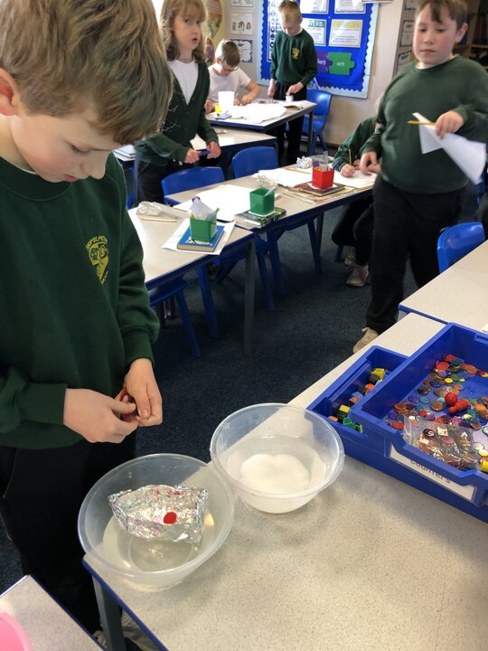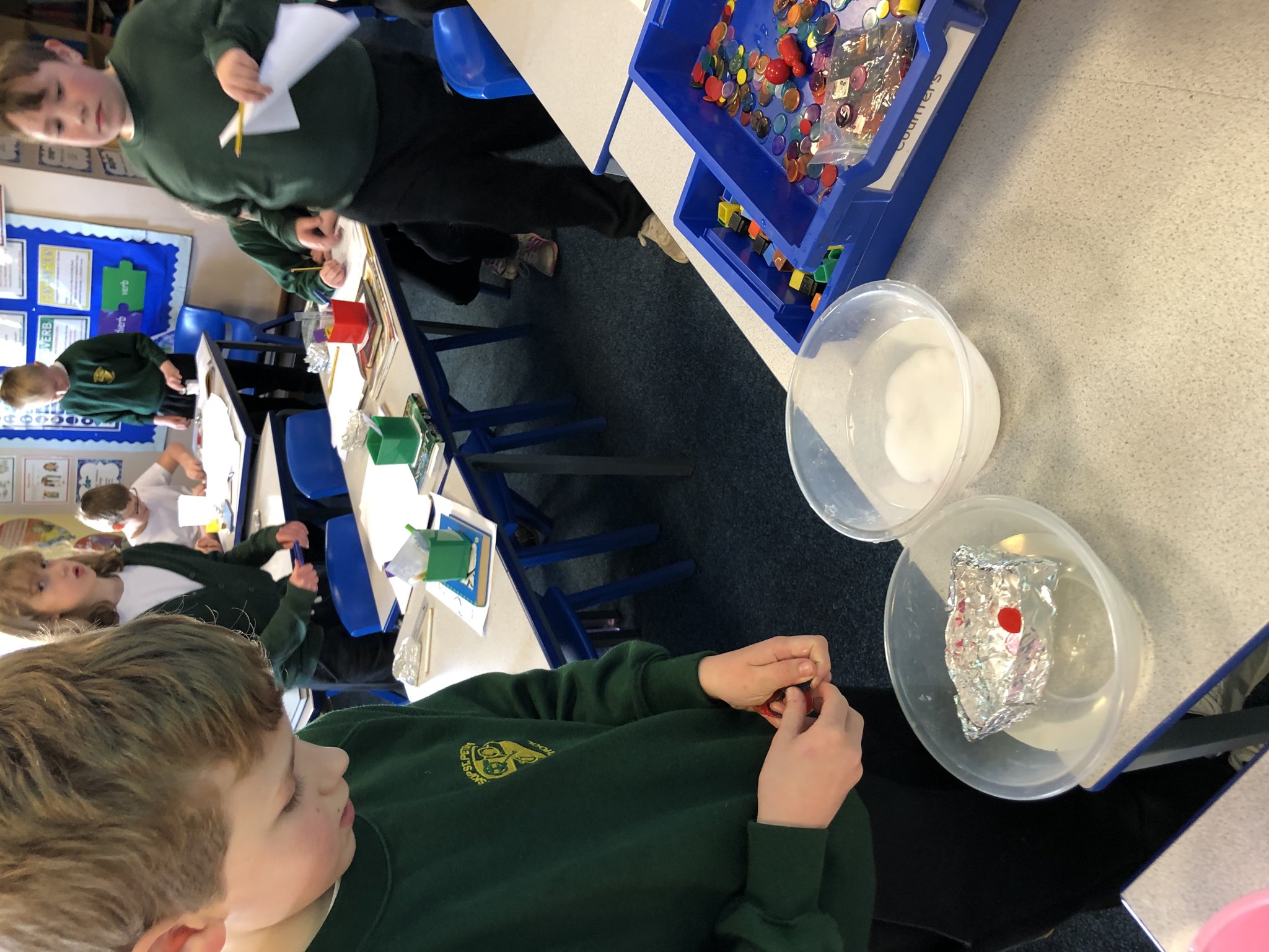 They also tested their boats’ buoyancy (upthrust) by filling them with counters. They found that the boat in salty water stayed afloat with more counters than in fresh water.