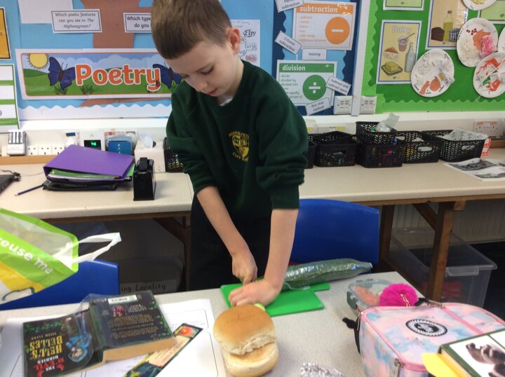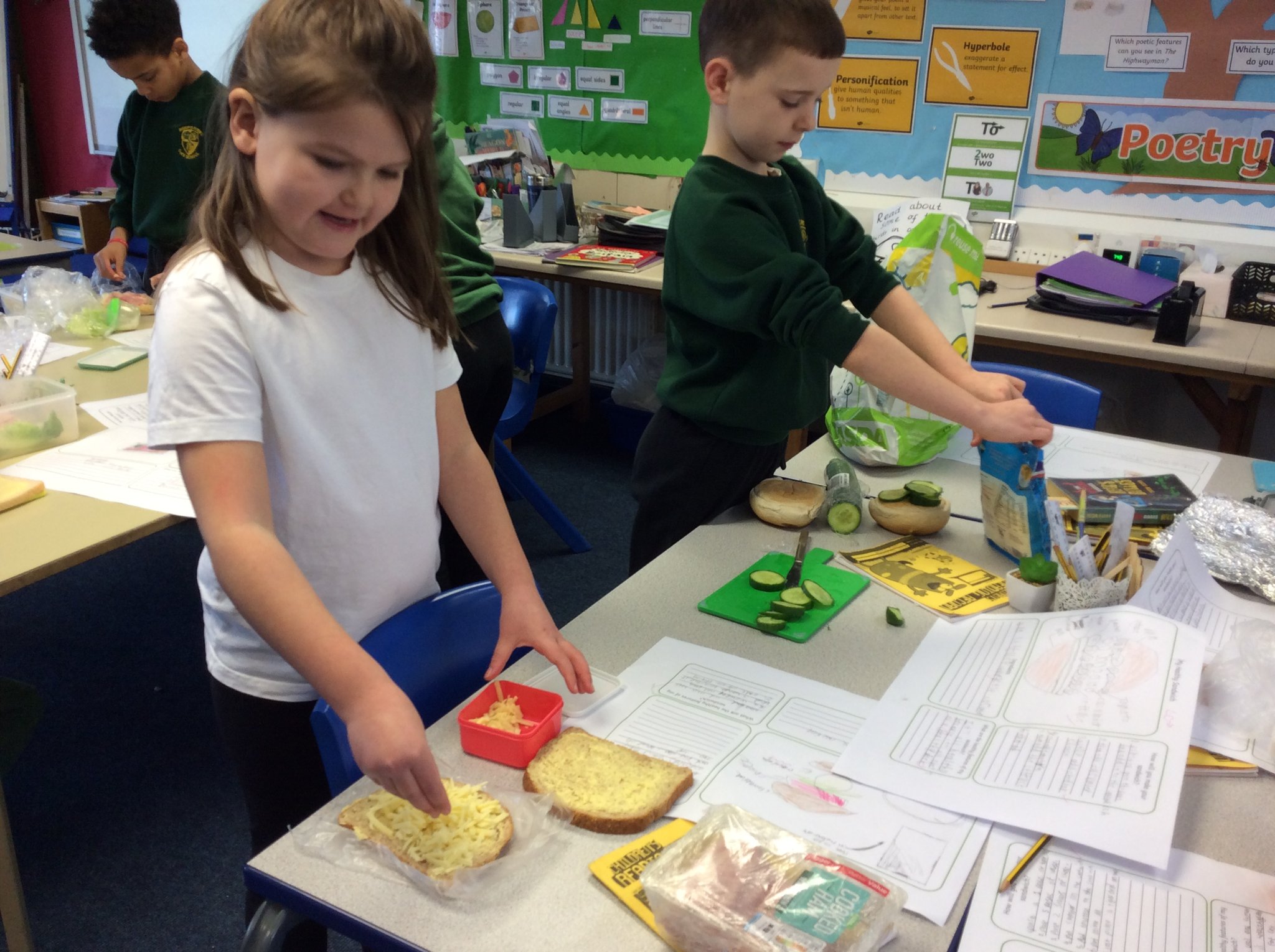 Following this, children followed their own instructions and layered their ingredients to create their sandwich.