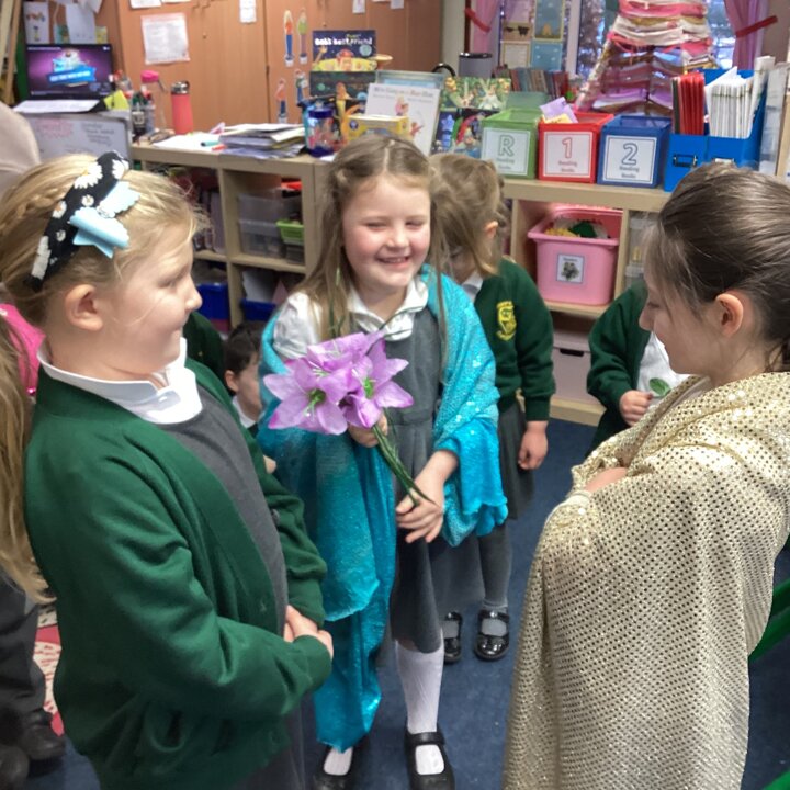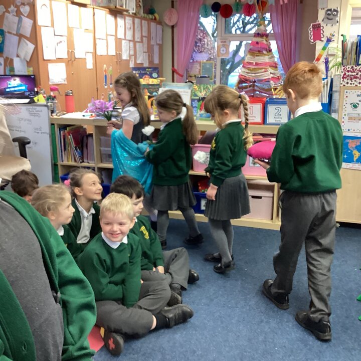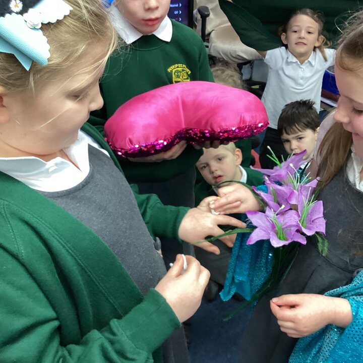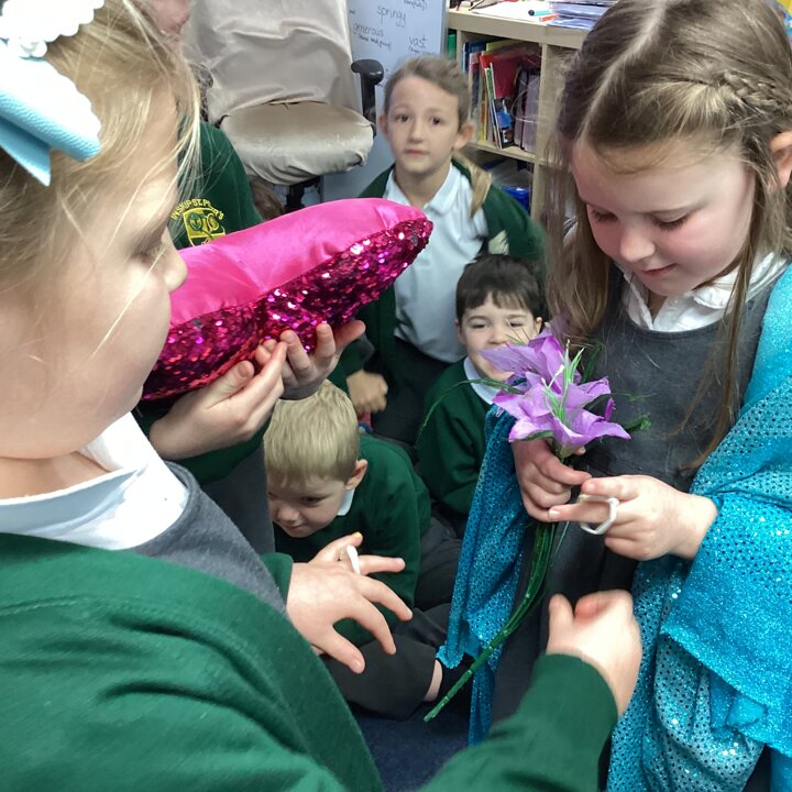 We had a great discussion about weddings with two of the class recounting weddings they had attended. The children asked many questions about marriage and unions. We discussed the symbolism of the events in a Christian wedding ceremony and acted out a wedding which they loved!