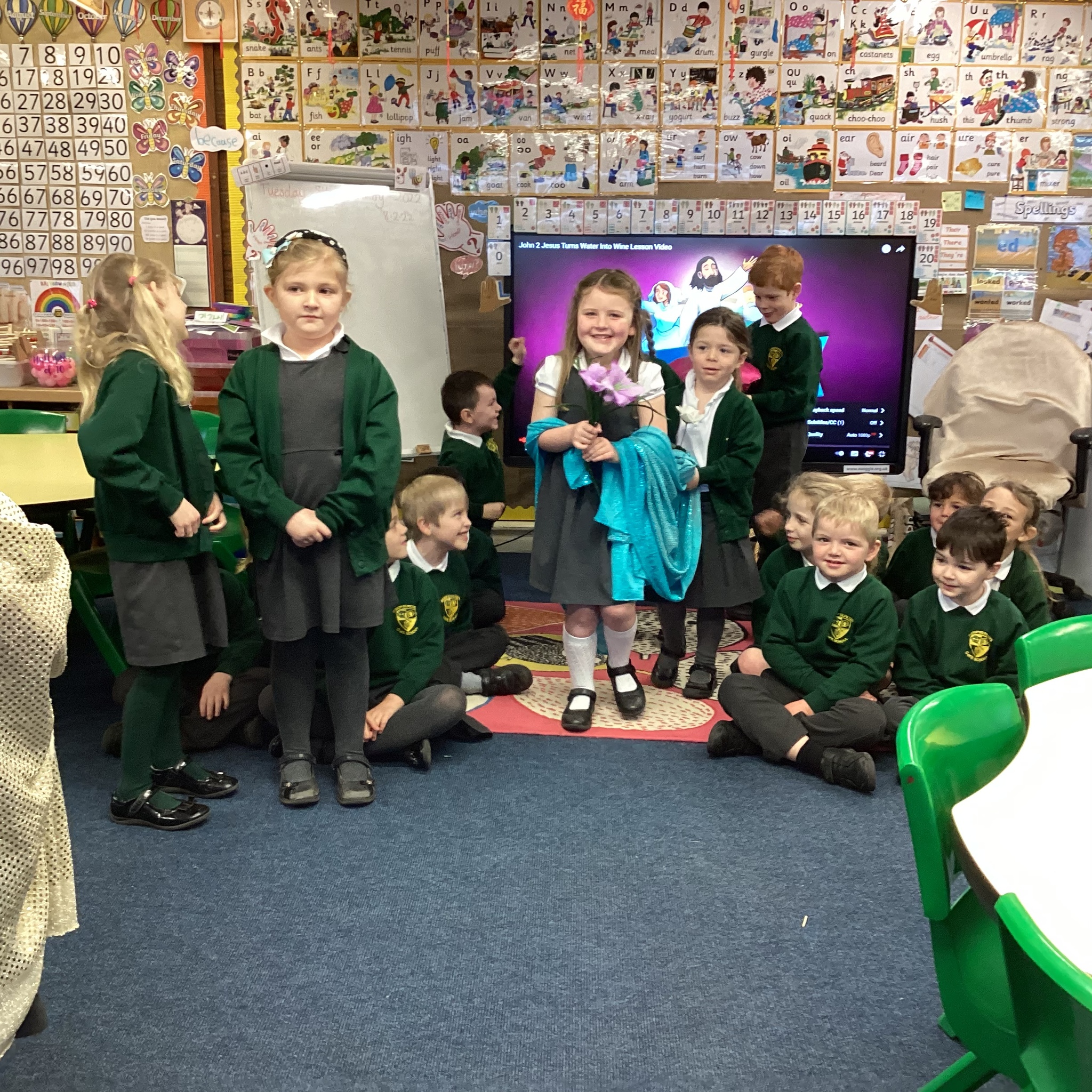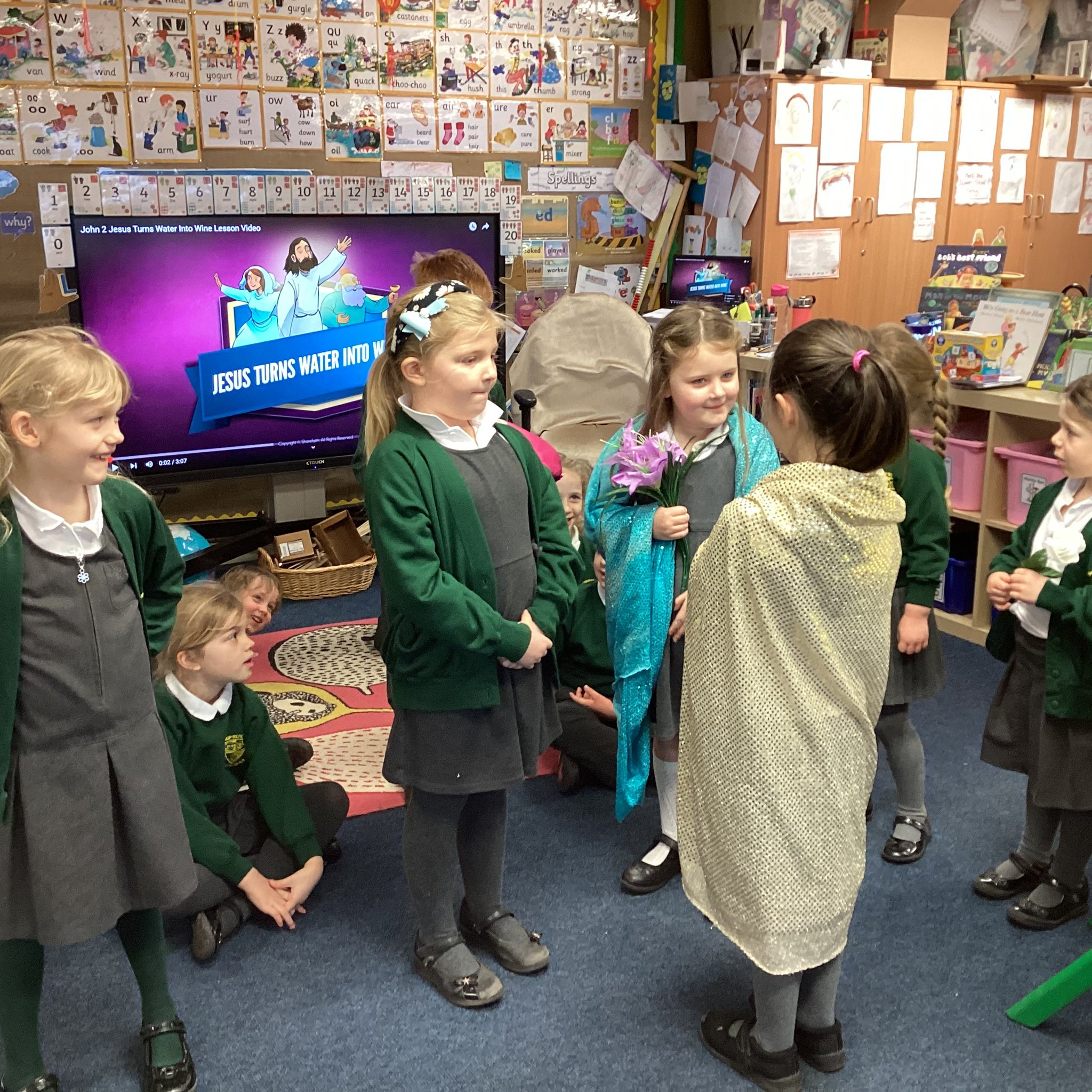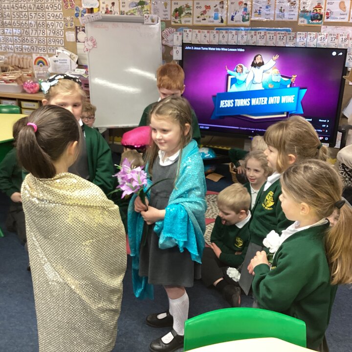 This week in our RE lesson we discussed the miracle Jesus performed when he turned water into wine (John 2:1-11) at the wedding in Cana. The children decided that the miracles Jesus performed show us that Jesus was special and that it made his friends, his disciples, realise how special he was.